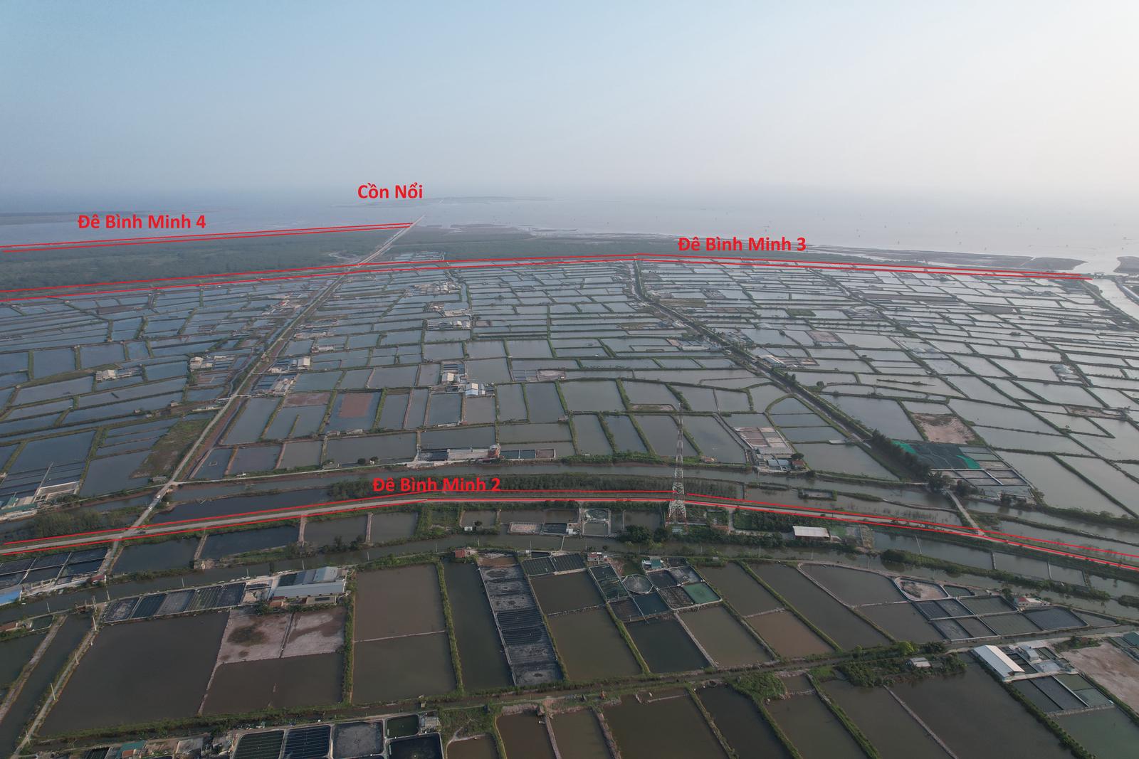 Cụ thể: Đê Bình Minh I được đắp năm 1959, chiều dài tuyến đê là 7,8km, quai đê lấn biển được 877,9ha. Đê Bình Minh II được đắp năm 1980, chiều dài tuyến đê 25,2km, quai đê lấn biển được 2.000ha. Đê Bình Minh III được đắp năm 1998, chiều dài tuyến đê 15km, quai đê lấn biển được 1.450ha. Đê Bình Minh IV: Đang thực hiện DA từ năm 2018 với chiều dài giai đoạn I là 6,3km (từ đê Bình Minh III đến đường ra Cồn Nổi) với tổng mức đầu tư 480 tỷ đồng. Tiến độ thực hiện đến nay đạt 95%. Dự kiến đến 30/6/2023 hoàn thành bàn giao đưa vào sử dụng.
