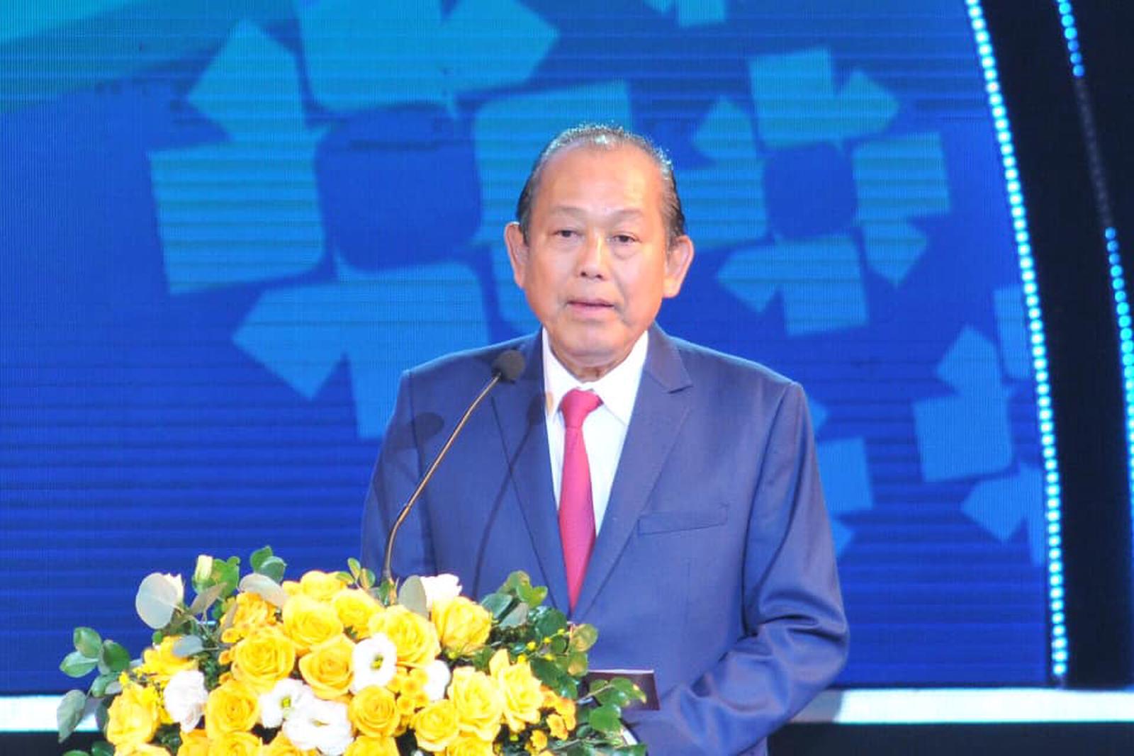 Phó Thủ tướng Trương Hòa Bình phát biểu tại Lễ Công bố giải thưởng THQG. Ảnh: LP