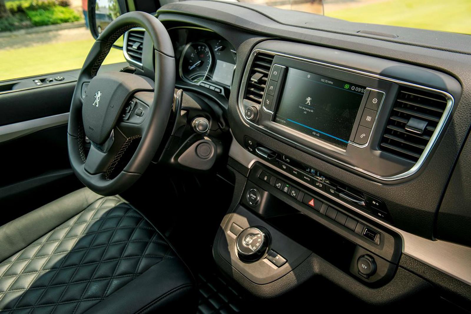 Ở tiêu chí này, Peugeot Traveller ghi điểm bằng một khoang cabin sang trọng với hàng loạt trang bị cao cấp giúp cả tài xế lẫn các ông chủ thoải mái thư giãn trên suốt hành trình. Xe được trang bị ghế ngồi bọc da cao cấp, êm ái cùng với ốp trang trí tinh tế, màn hình hiển thị thông tin trên kinh lái HUD hiện đại, màn hình điều khiển cảm ứng trung tâm 7 inch hỗ trợ kết nối MirrorLink®, Apple Carplay, Android Auto cùng cửa sổ trời toàn cảnh mang lại không gian nội thất thoáng đãng hơn.