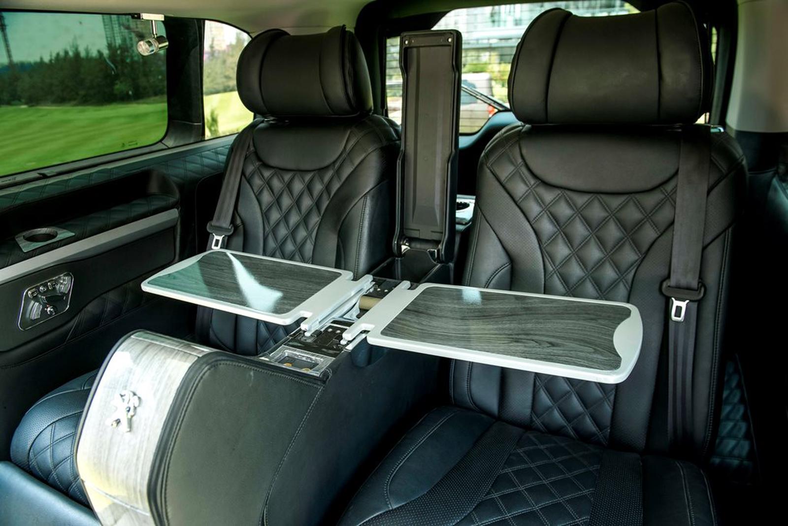 Ngoài ra, hãng xe Pháp còn bố trí thêm 2 bàn làm việc kiểu gập phía sau ghế tài xế và ghế phụ cùng rất nhiều ổ điện và ổ cắm USB ở hàng ghế sau, giúp người dùng có thể sạc điện thoại, hay laptop khi làm việc trên xe.