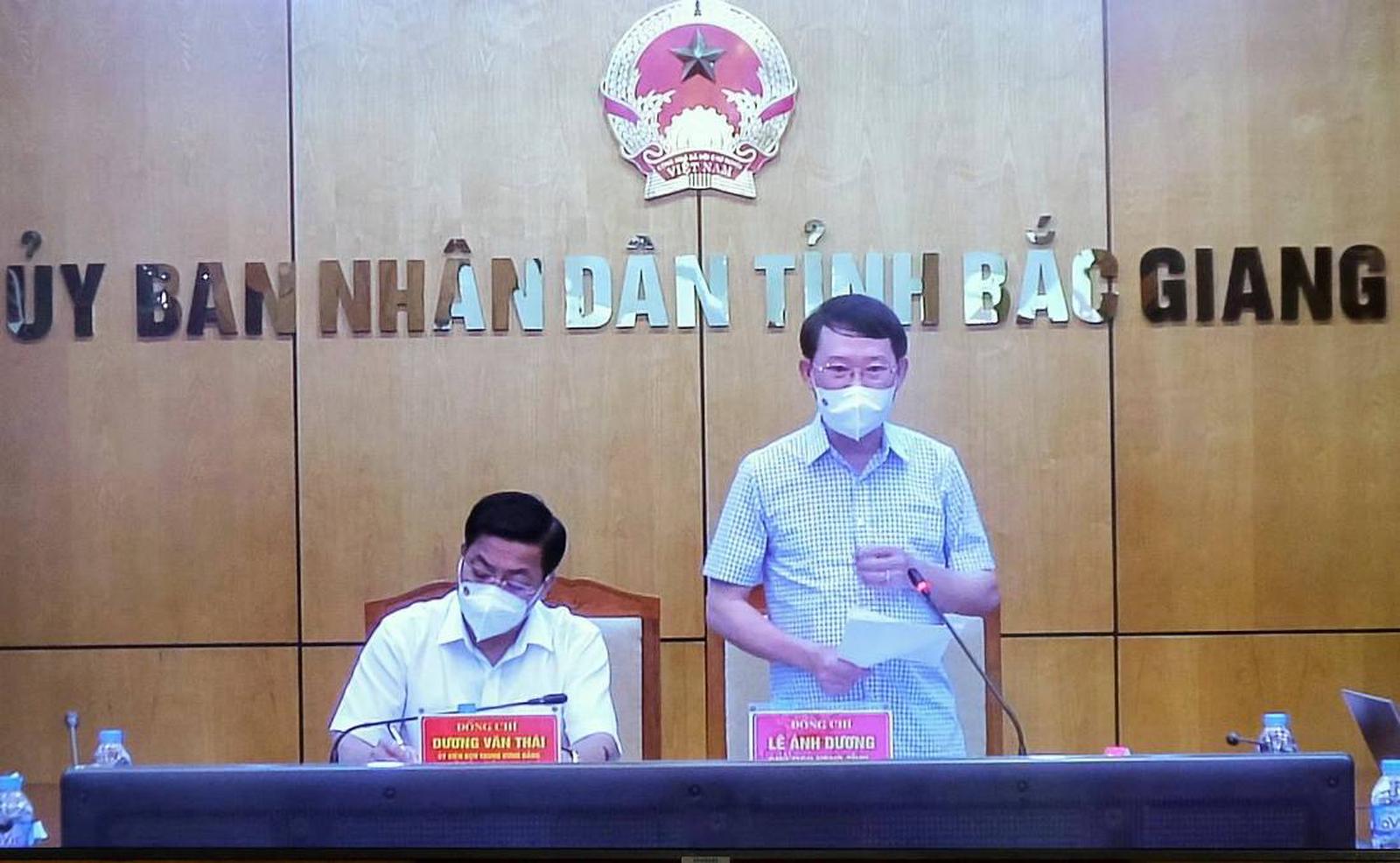 Chủ tịch UBND tỉnh Bắc Giang Lê Ánh Dương cho biết, hiện nay, tình hình dịch Covid-19 trên địa bàn tỉnh Bắc Giang đang diễn biến hết sức phức tạp. Tuy nhiên, để bảo đảm kết nối cung cầu, tiêu thụ nông sản được thông suốt, UBND tỉnh đã chỉ đạo Sở Công Thương, Sở Nông nghiệp và Phát triển nông thôn (NNPTNT) phối hợp chặt chẽ với Vụ Thị trường trong nước, Bộ Công Thương xây dựng kịch bản dự trữ, tiêu thụ hàng hóa ứng phó dịch bệnh Covid -19 trên địa bàn tỉnh; phương án đảm bảo lưu thông, cung ứng hàng hóa phục vụ nhu cầu người dân trong tình hình dịch Covid-19; kế hoạch hỗ trợ đời sống cho công nhân lao động đang ở trọ trên địa bàn tỉnh trong thời gian thực hiện cách ly phòng, chống Covid-19.
