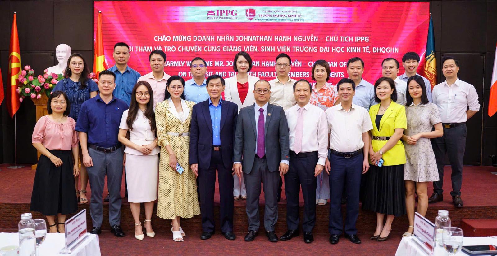 Tỷ phú Johnathan Hạnh Nguyễn tại buổi giao lưu với Trường Đại học Kinh tế - Đại học Quốc gia Hà Nội.