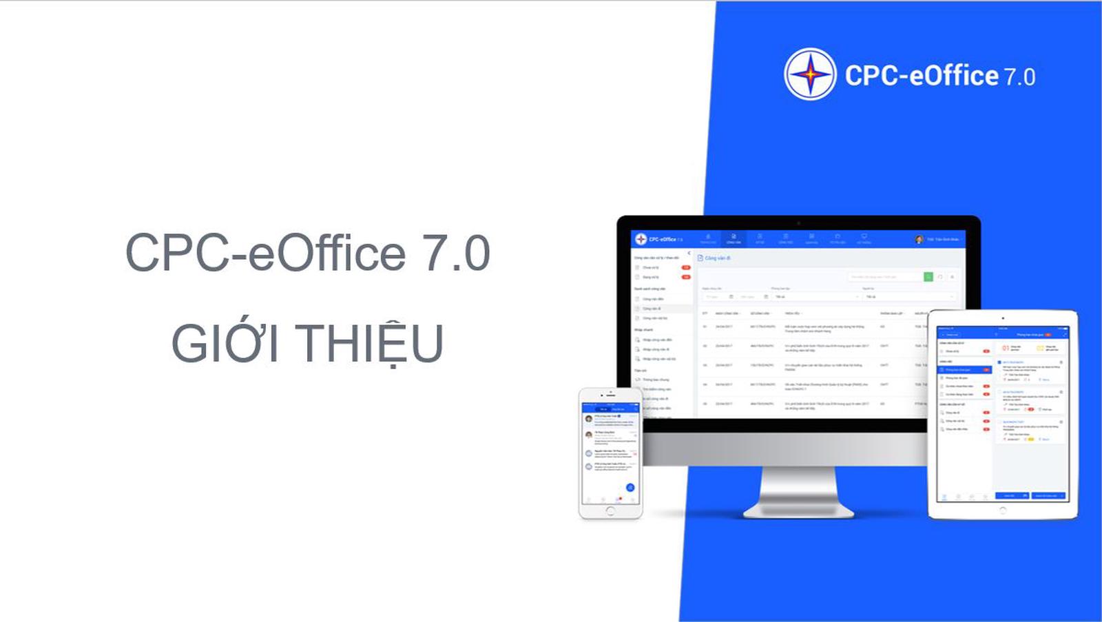Với phương châm không ngừng hoàn thiện, đổi mới để đáp ứng nhu cầu này càng cao của người dùng, đến tháng 10/2017, EVNCPC đã ra mắt phiên bản CPC-eOffice 7.0. Đây là hệ thống đầu tiên EVNCPC sử dụng kiến trúc Microservices và nhiều công nghệ hiện đại để tạo ra 01 ứng dụng được triển khai theo mô hình tập trung tại Trung tâm dữ liệu thay cho mô hình phân tán (cài đặt các hệ thống riêng lẻ tại các đơn vị thành viên), sử dụng trên nhiều loại thiết bị (máy tính, tablet, smartphone) với nhiều hệ điều hành (Windows, Mac OS, Android, iOS), nâng cao tốc độ xử lý, an toàn và tích hợp linh hoạt với các phần mềm nghiệp vụ khác.
