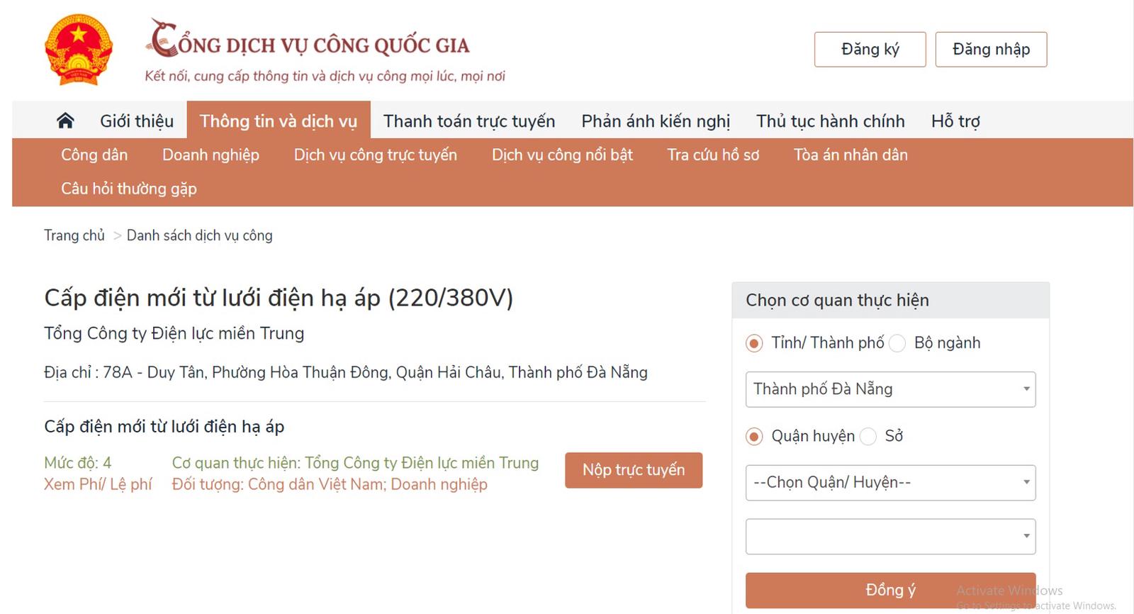Cỗng Dịch vụ Quốc gia tiếp nhận hồ sơ đăng ký điện. Ảnh: Ngọc Phó