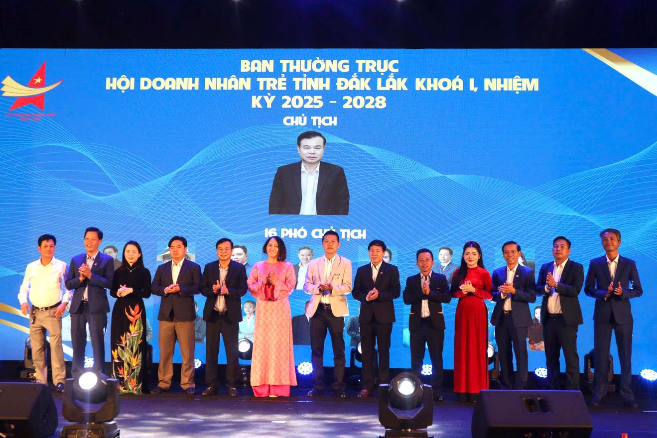 Ban Chấp hành Hội Doanh nhân trẻ Đắk Lắk khóa I, nhiệm kỳ 2025-2028 ra mắt trước toàn thể đại biểu, cam kết xây dựng một cộng đồng vững mạnh. Ảnh: HT