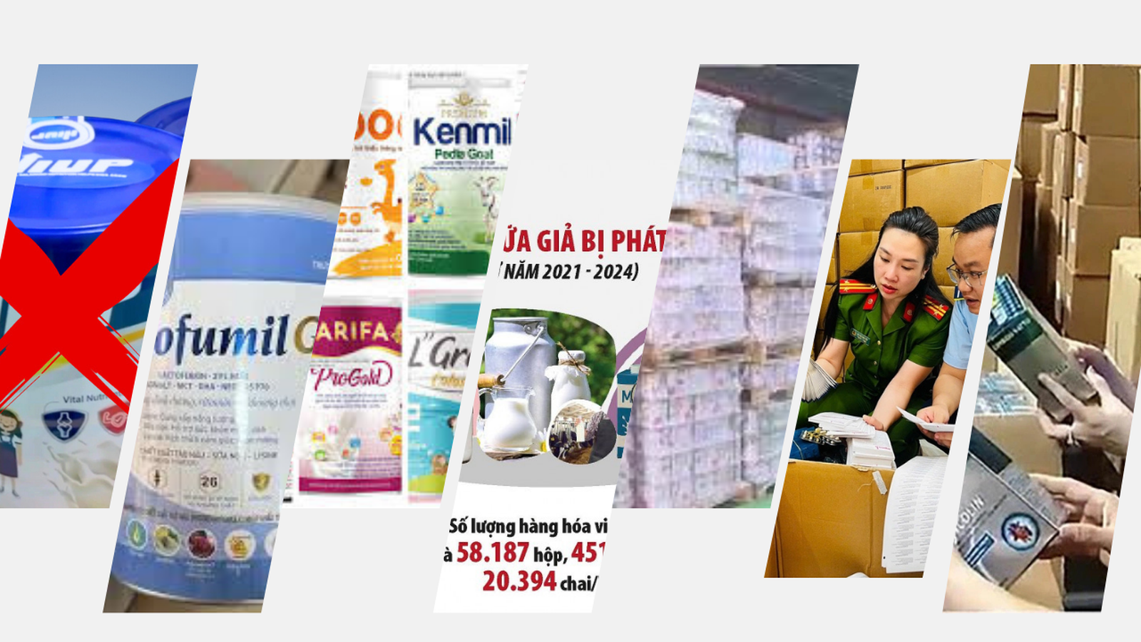 Hàng chục loại thực phẩm, dinh dưỡng (dạng sữa bột) là hàng giả bị phát hiện, thu hồi, tiêu hủy. Ảnh: T.L