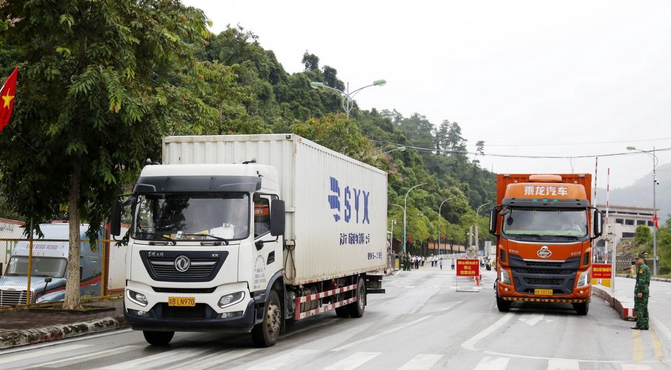 Phương tiện chở hàng nhập khẩu thông quan qua cửa khẩu Quốc tế Hữu Nghị. Ảnh: Báo và Đài PTTH Lạng Sơn