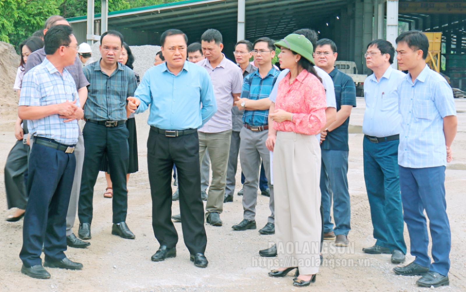 Đoàn công tác kiểm tra thực tế tại Công ty Cổ phần bê tông Lạng Sơn. Ảnh: Baolangson.vn