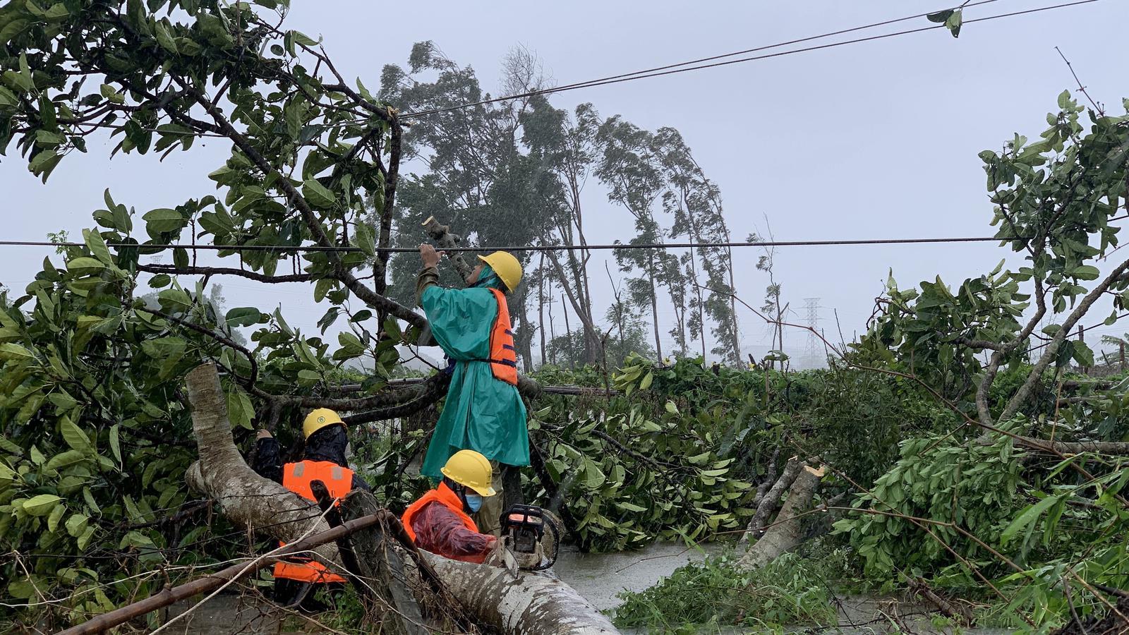 Vượt khó khăn tiếp cận hiện trường sửa chữa lưới điện bị hư hỏng do bão số 5