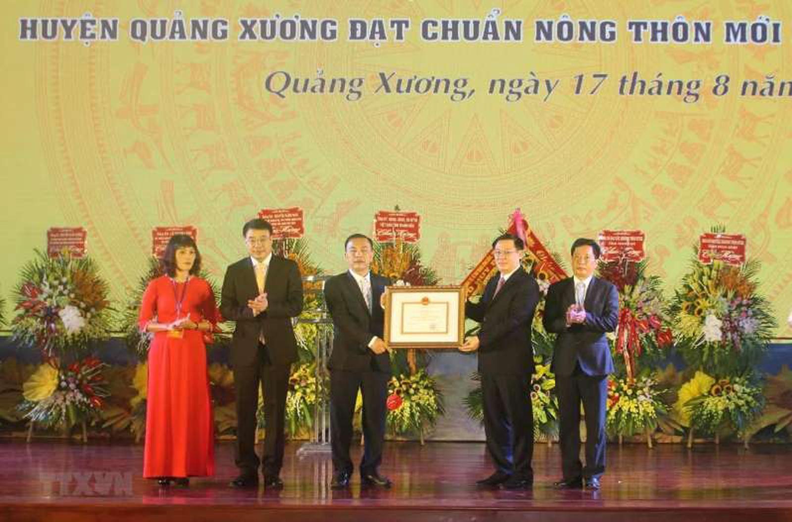 Huyện Quảng Xương đón nhận bằng đạt chuẩn nông thôn mới. Ảnh: VT