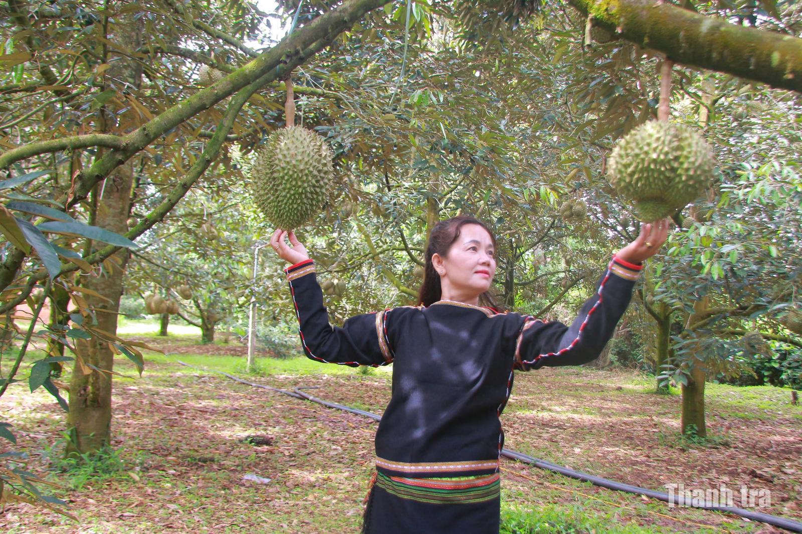 Nông dân Đắk Lắk nỗ lực duy trì chất lượng sầu riêng giữa mùa vụ khó khăn. Ảnh: NG