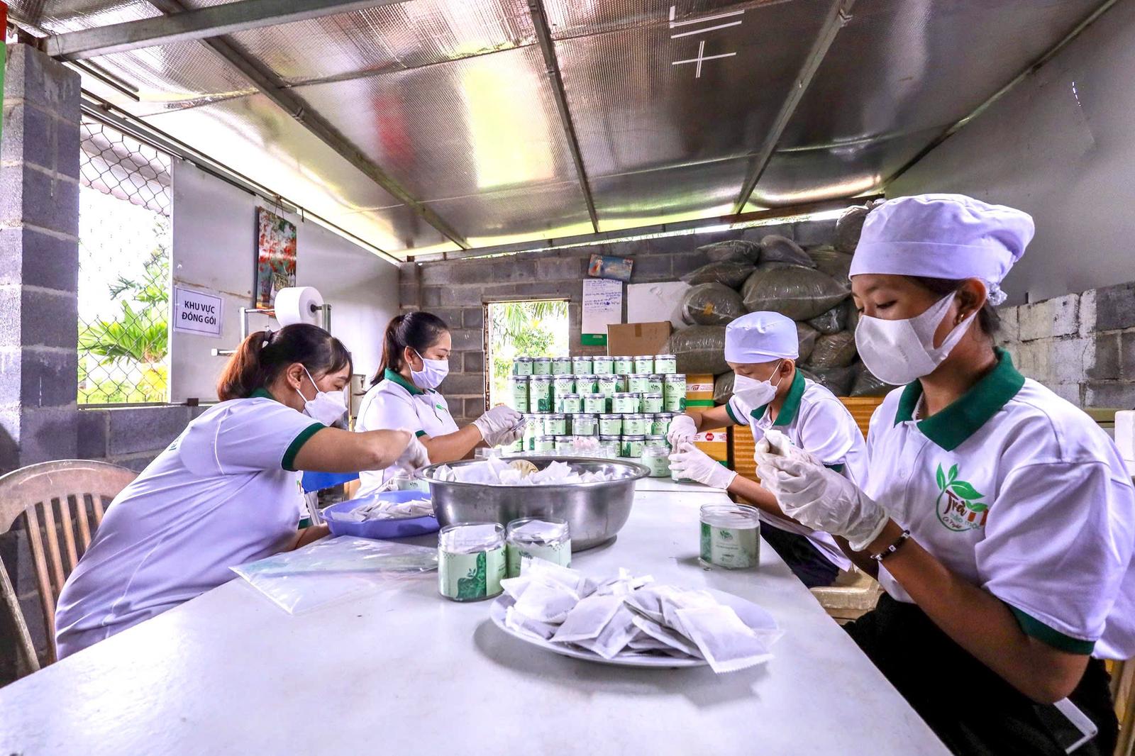 Cơ sở Trà thảo mộc Cô Ngát Natural với sản phẩm trà thảo mộc đạt chứng nhận OCOP 3 sao tạo việc làm cho nhiều lao động địa phương và các em khuyết tật. Ảnh: Anh Minh