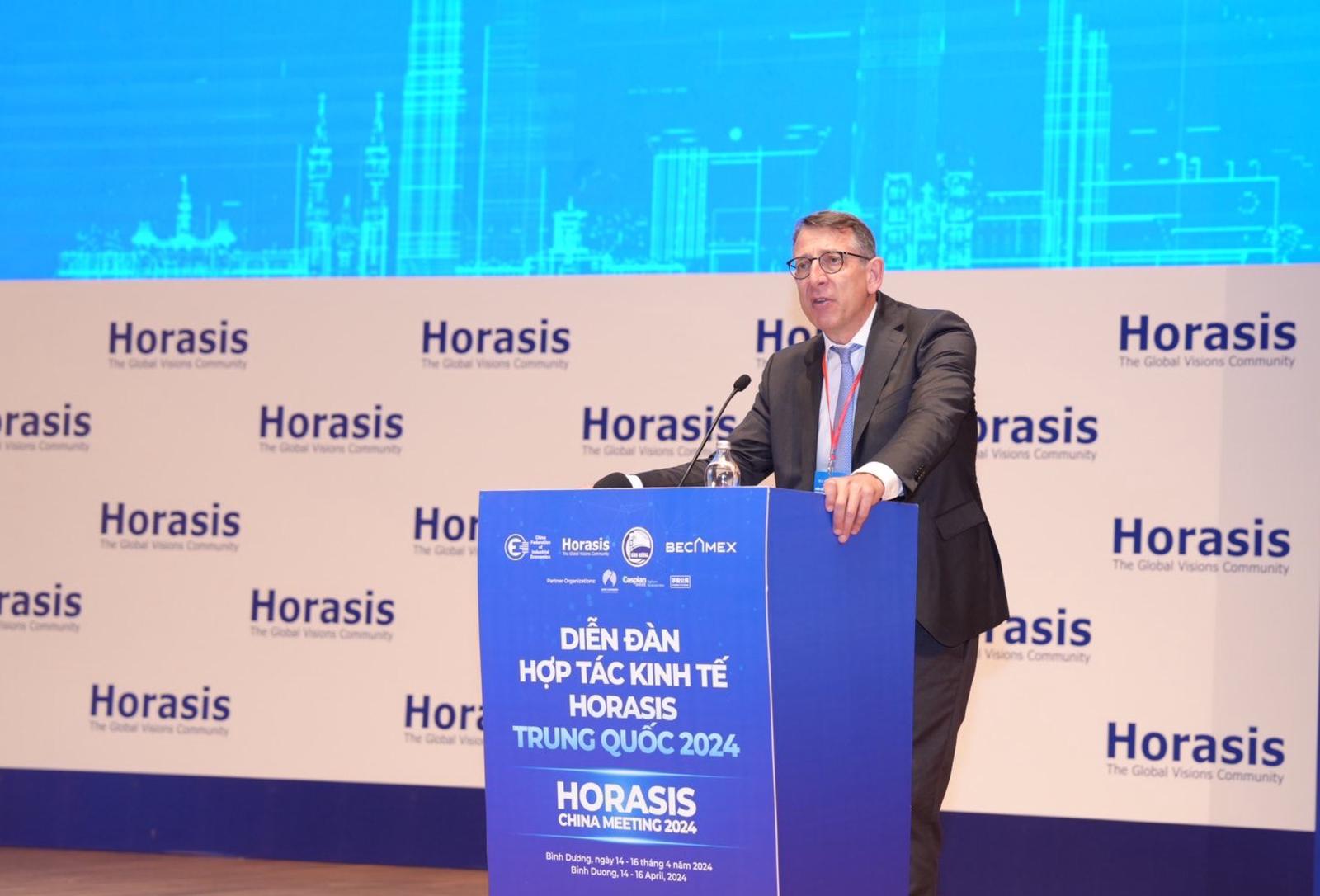 Tại sự kiện ông Frank-Jürgen Richter - Chủ tịch Tổ chức Horasis cũng gửi lời cảm ơn tới UBND tỉnh Bình Dương và Becamex IDC đã đồng hành phối hợp cùng Horasis để tổ chức Diễn đàn Hợp tác kinh tế Horasis Trung Quốc 2024.