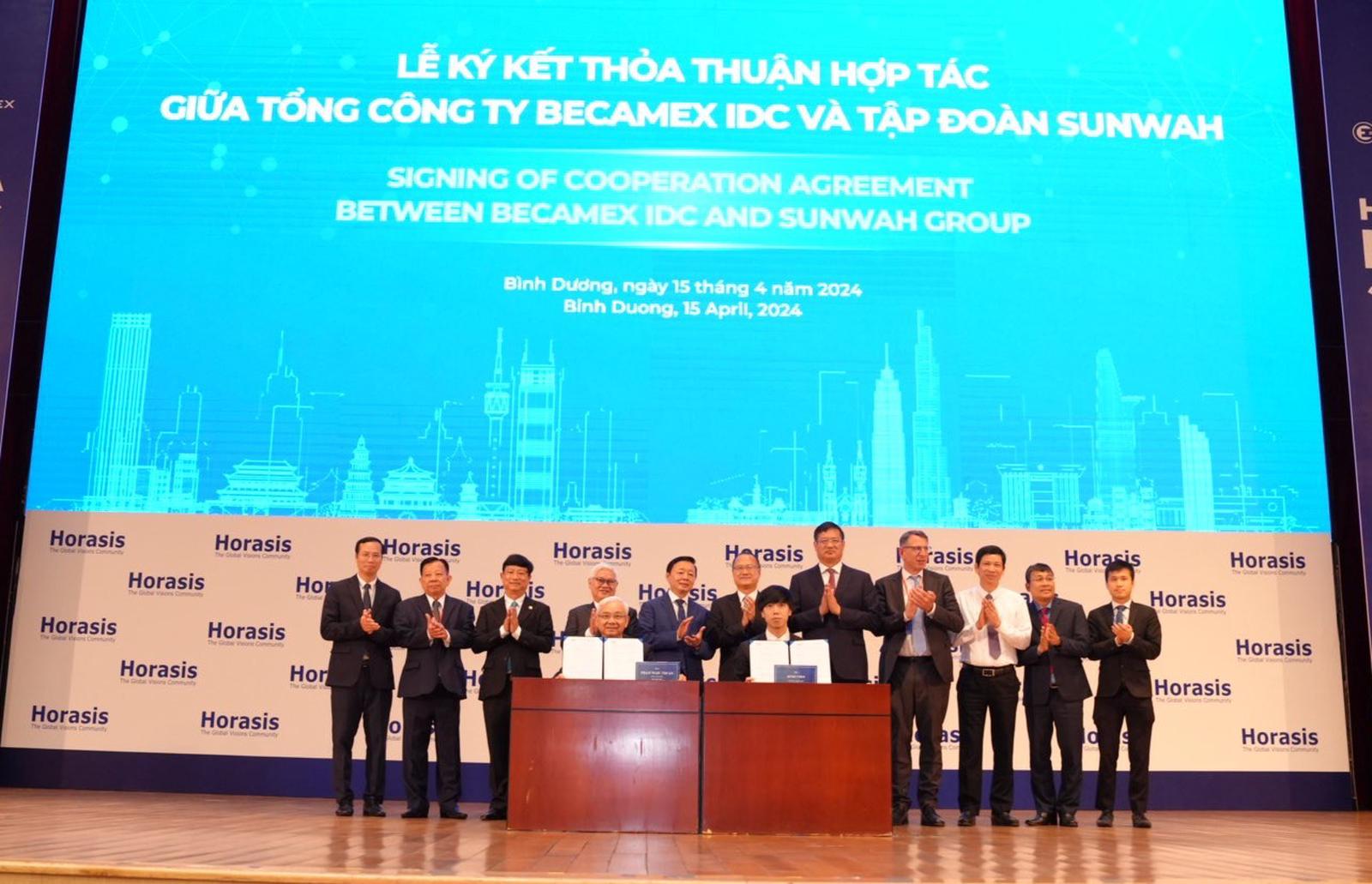 Với sự chứng kiến của lãnh đạo Chính phủ, lãnh đạo tỉnh Bình Dương, Tổng Công ty Becamex IDC và Tập đoàn Sunwah đã thực hiện ký kết biên bản ghi nhớ nhằm thúc đẩy những chương trình hợp tác cụ thể liên quan đến sự phát triển toàn diện giữa hai bên, hướng đến những lĩnh vực quan trọng như đổi mới sáng tạo, chuyển đổi số, phát triển công nghệ, phát triển bền vững, Net Zero và đảm bảo về sự thịnh vượng chung.