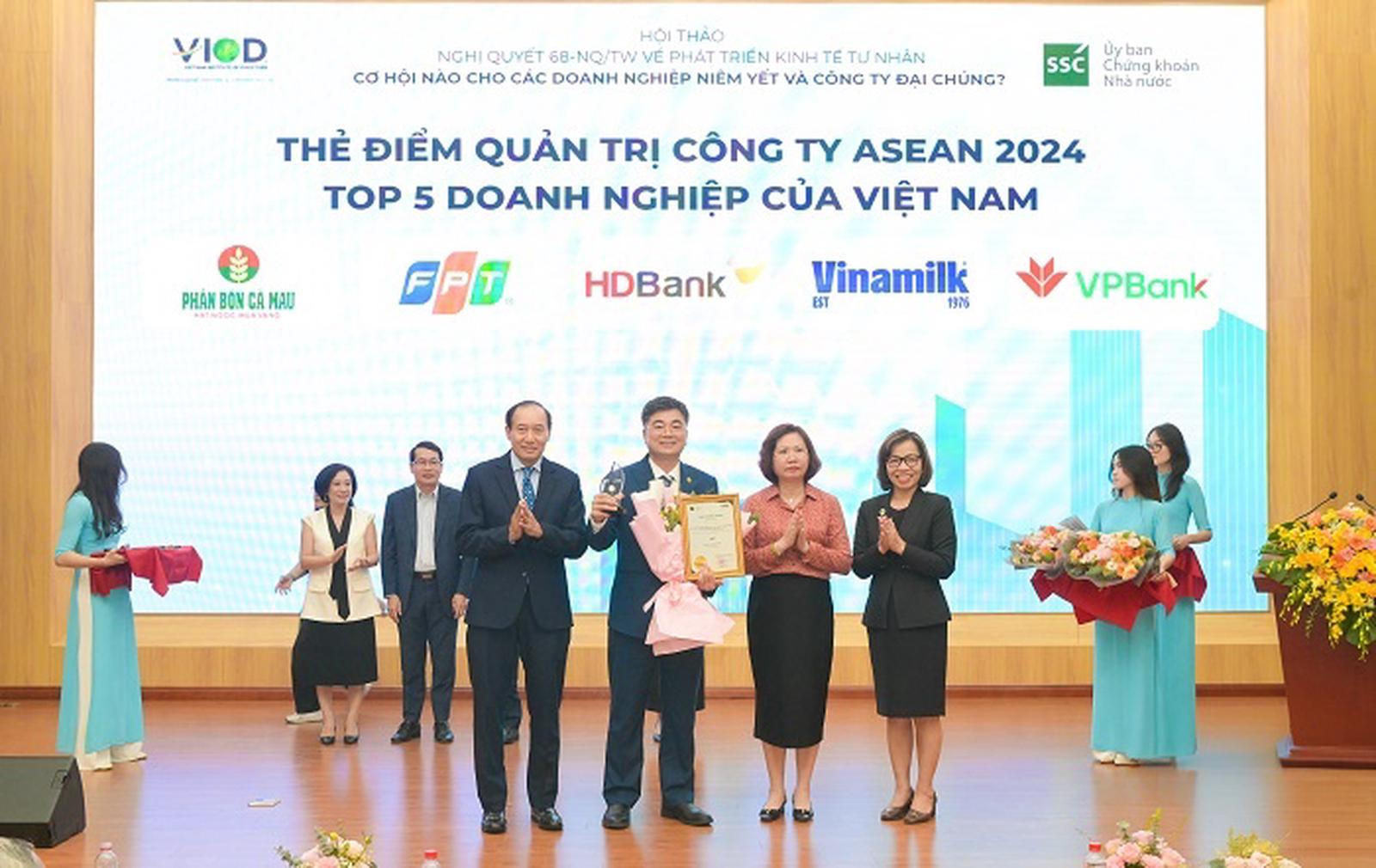 (Thanh tra) - Ngày 6/6, tại hội thảo “Nghị quyết 68-NQ/TW về phát triển kinh tế tư nhân: Cơ hội nào cho các doanh nghiệp niêm yết và công ty đại chúng?”, Viện Thành viên Hội đồng Quản trị Việt Nam (VIOD) đã vinh danh các doanh nghiệp có thành tích nổi bật trong kỳ đánh giá Quản trị công ty ASEAN (ACGS) năm 2024.