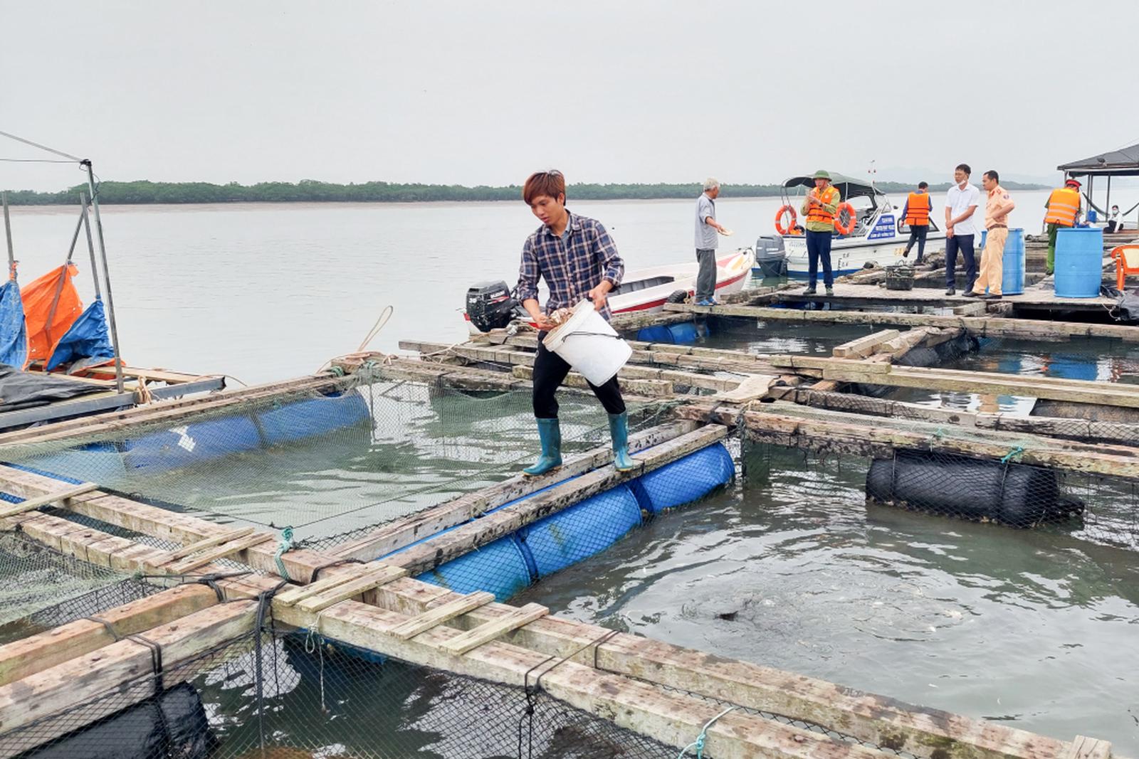 Nuôi cá biển tại vụng Thoi Dây, thôn Phúc Tiến, xã Tân Lập, Đầm Hà. Ảnh: Hữu Việt