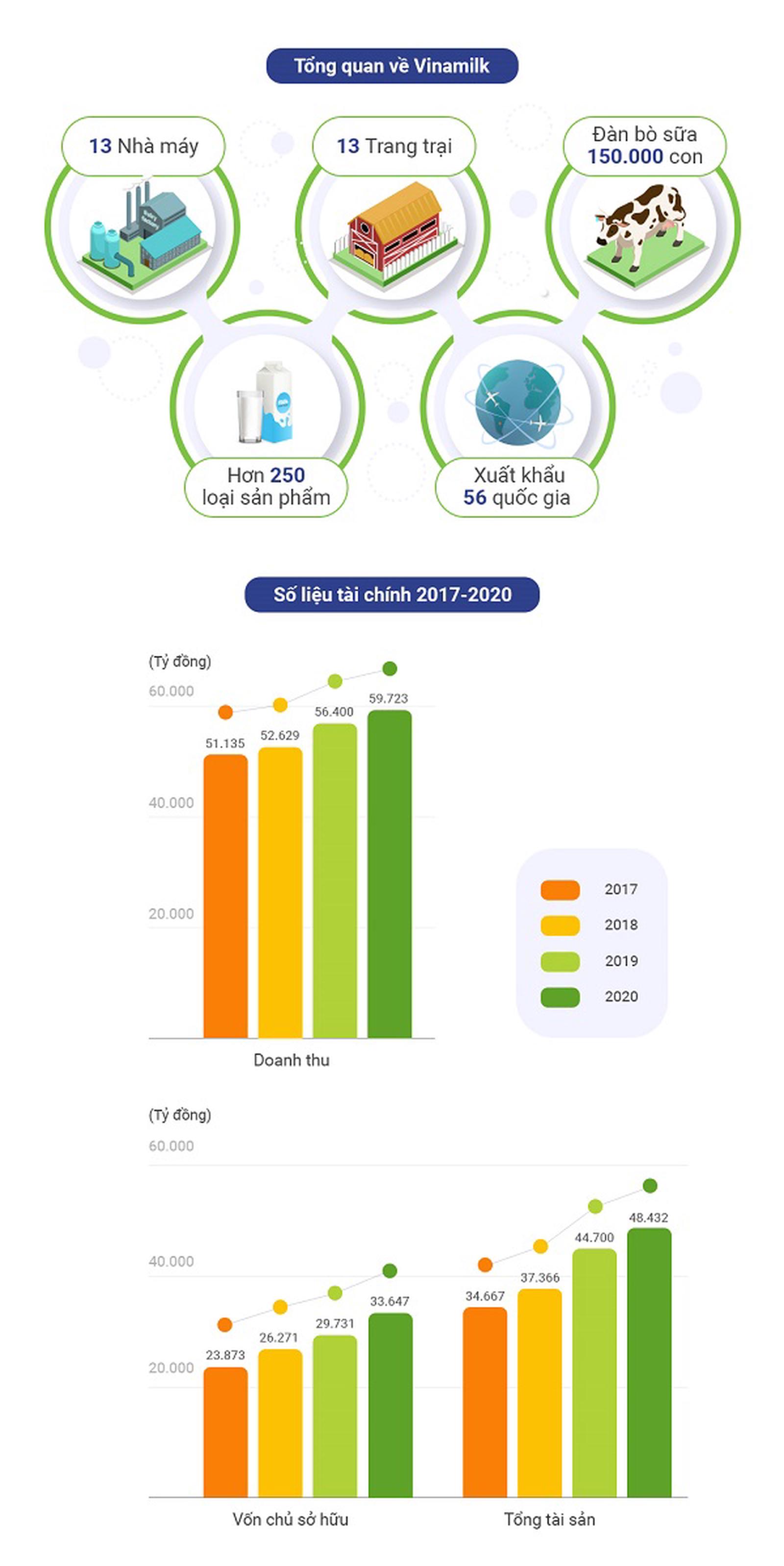 Sau một năm 2020 với nhiều thách thức do Covid-19, việc thăng 6 hạng liên tiếp đã cho thấy sự vững chắc trong chiến lược phát triển của Vinamilk. Năm 2020, nhờ các chiến lược phù hợp ứng phó với Covid-19, Vinamilk đã ghi nhận các kết quả kinh doanh tích cực. Doanh thu cuối năm 2020 đạt 59.723 tỷ đồng, tăng 5,9% so với cùng kỳ 2019 và tăng 17% so với năm 2017.