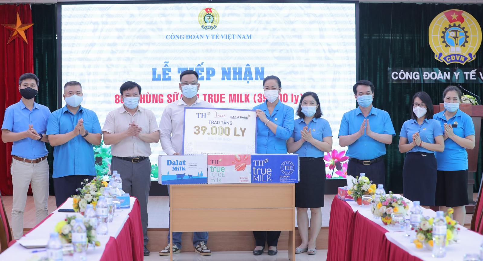 Đại diện Tập đoàn TH tặng sữa cho Công đoàn ngành Y tế Việt Nam. Ảnh: Tập đoàn TH