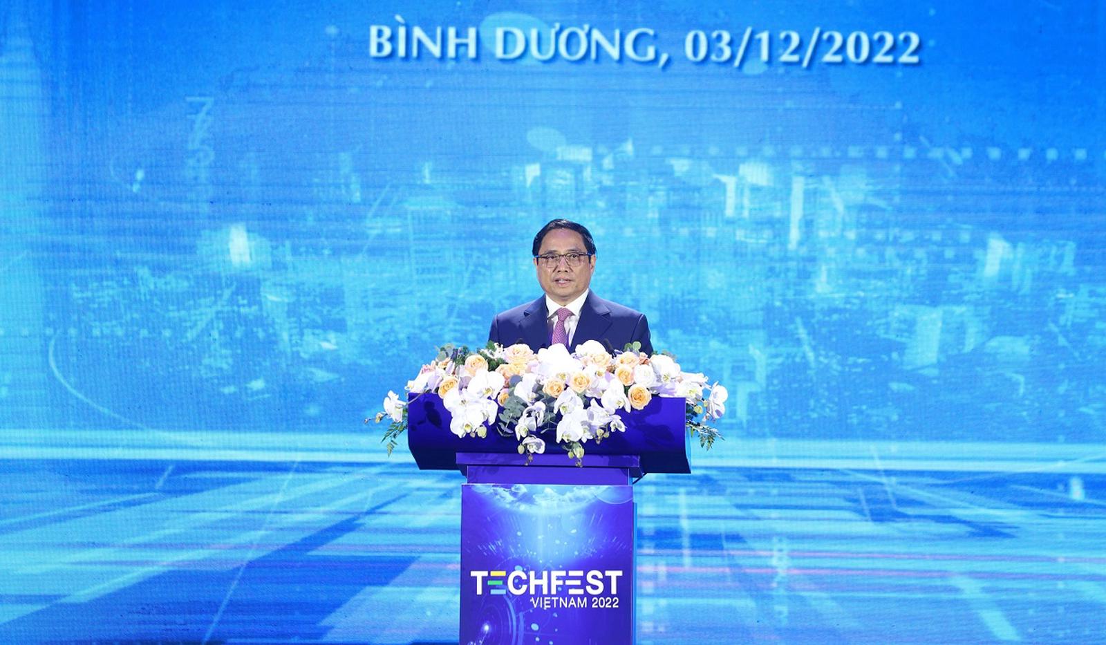 Thủ tướng Chính phủ Phạm Minh Chính phát biểu tại chương trình "Dấu ấn Techfest Vietnam 2022". Ảnh: A.X
