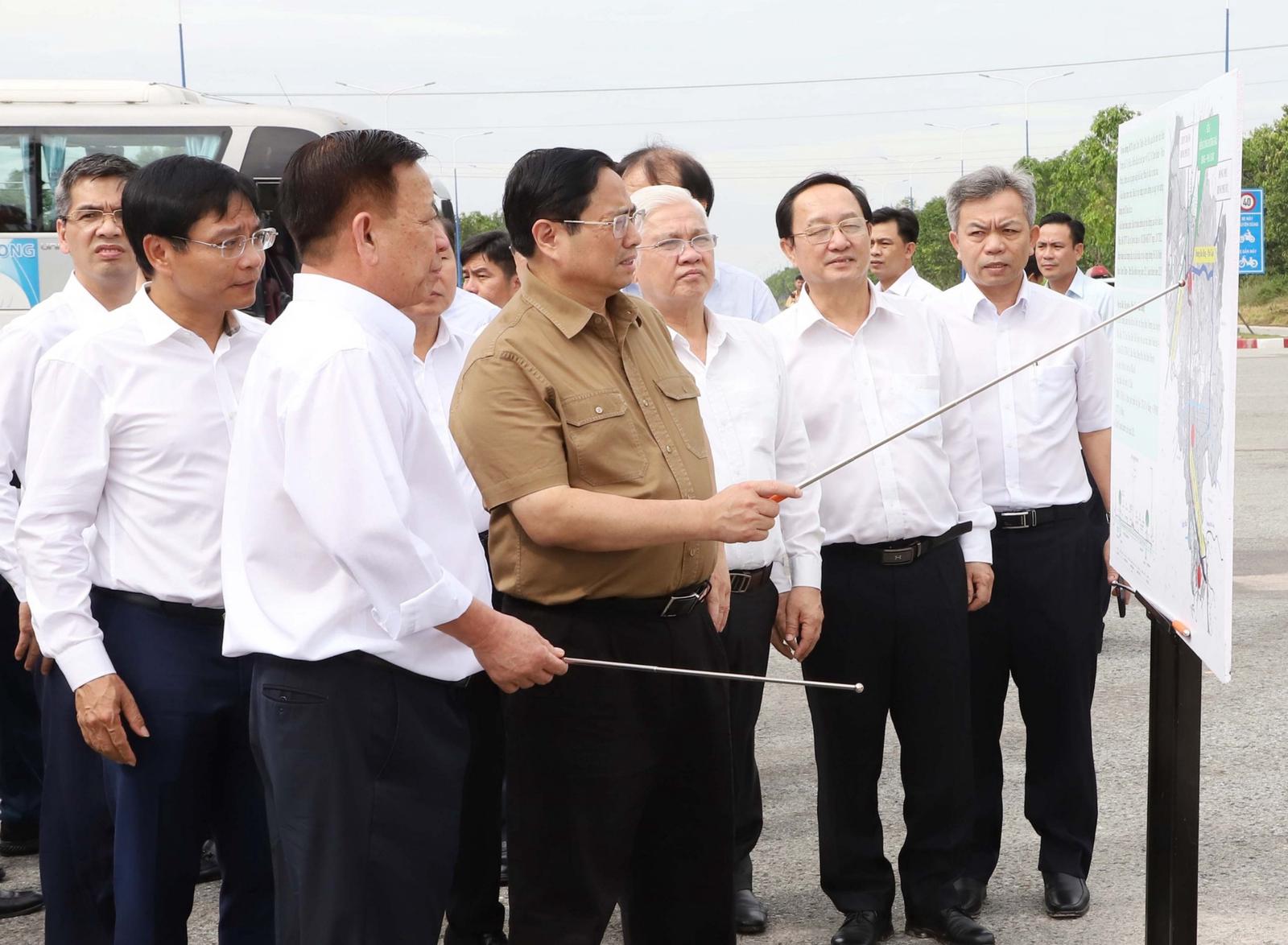 Thủ tướng Chính phủ Phạm Minh Chính khảo sát một số dự án giao thông quan trọng tại Bình Dương. Ảnh: A.X