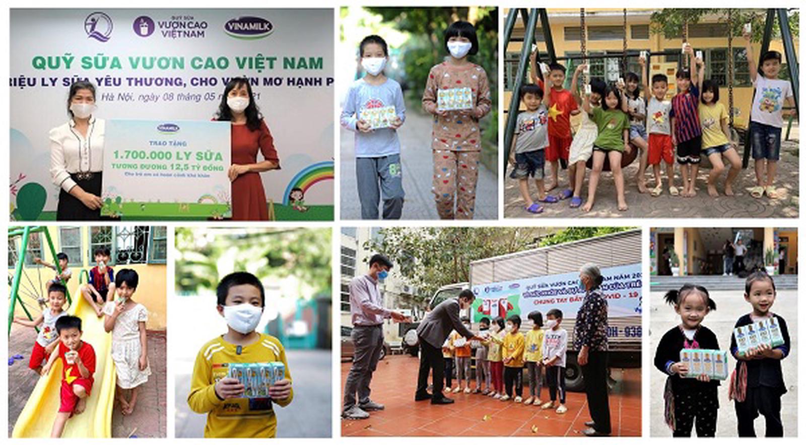 Vinamilk là doanh nghiệp tích cực triển khai các chương trình hướng đến trẻ em. Trong 2 năm đại dịch bùng phát, Vinamilk đã đẩy mạnh các hoạt động chăm sóc trẻ em như Quỹ sữa Vươn cao Việt Nam (với 3,4 triệu ly sữa tương đương 25 tỷ đồng trong năm 2020 và 2021); hỗ trợ hàng trăm ngàn hộp sữa cho trẻ em tại các nơi cách ly tập trung; hỗ trợ kinh phí cho nhiều trường hợp trẻ em phẫu thuật tim, mắt có hoàn cảnh khó khăn… Với nhiều hoạt động hướng đến cộng đồng, Vinamilk đã đóng góp gần 100 tỷ đồng gồm tiền mặt, sản phẩm dinh dưỡng, trang thiết bị y tế và nhiều hỗ trợ khác để chung tay chống dịch, vì một Việt Nam khỏe mạnh.