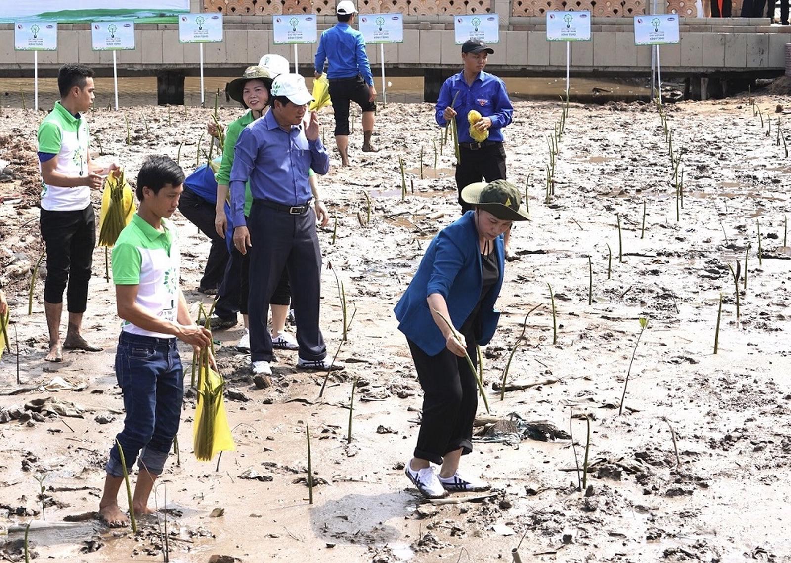 Bà Nguyễn Thị Kim Ngân - Uỷ viên Bộ Chính trị, Chủ tịch Quốc Hội và các đại biểu trồng cây đước tại xã Đất Mũi Với tinh thần “Uống nước nhớ nguồn”, Quỹ 1 triệu cây xanh cho Việt Nam đã về với Cà Mau - nơi ghi dấu ấn lịch sử mang tính đặc thù của cuộc chuyến tranh nhân dân bảo vệ Tổ quốc và cuộc cách mạng giải phóng dân tộc với mục đích tạo môi trường cảnh quan, góp phần chống xói lở bờ biển và khắc phục hậu quả thiên tai vùng đồng bằng sông Cửu Long – trung tâm sản xuất nông nghiệp lớn nhất cả nước. Tại điểm dừng chân đầu tiên của năm 2018, Quỹ 1 triệu cây xanh đã trồng gần 100 ngàn cây các loại như đước, phi lao, xà cừ… có giá trị khoảng 900 triệu đồng tại các khu vực như Mốc tọa độ quốc gia GPS 0001, khu vực bờ biển xã Đất Mũi, huyện Ngọc Hiển và huyện Cái Nước của tỉnh Cà Mau nhằm khắc phục tình trạng hạn hạn, chống xâm nhập mặn tại địa phương.Chủ tịch Quốc Hội Nguyễn Thị Kim Ngân trồng cây đước tại xã Đất Mũi