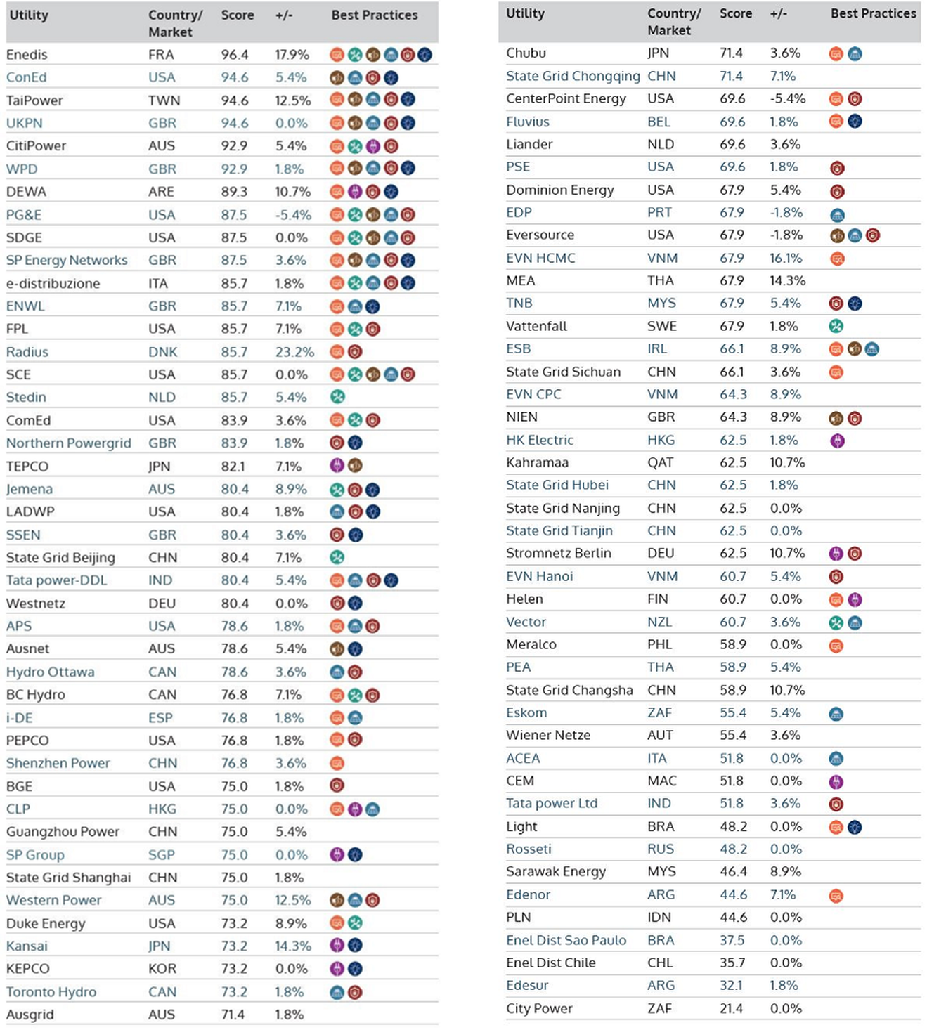 Kết quả đánh giá năm 2021 cho thấy, xu hướng tập trung phát triển nguồn năng lượng xanh của các đơn vị cung cấp điện trên toàn cầu. Trong đó, khu vực châu Âu đang đi đầu về việc quản lý lưới khi có sự xâm nhập lớn của các nguồn năng lượng tái tạo, còn khu vực Châu Á – Thái Bình Dương đang xúc tiến các chương trình hành động về xe điện.