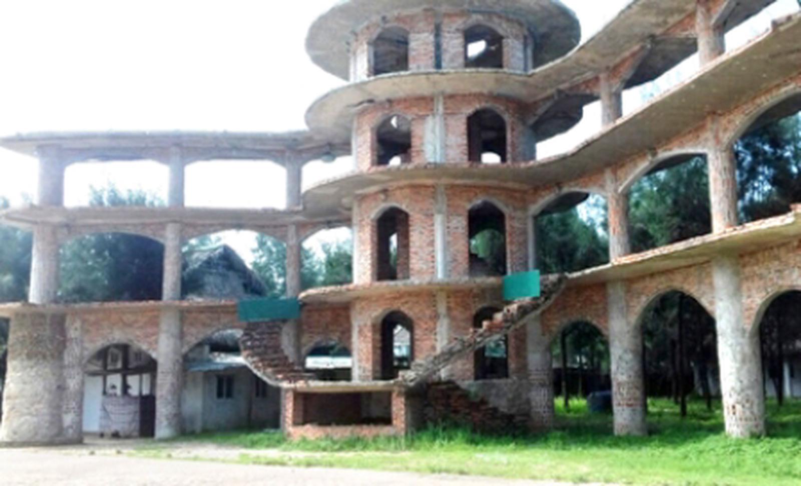 Cổng vào Khu du lịch sinh thái biển Tiên Trang xây dang dở đứng chỏng chơ nhiều năm qua. Ảnh: Trần Lê