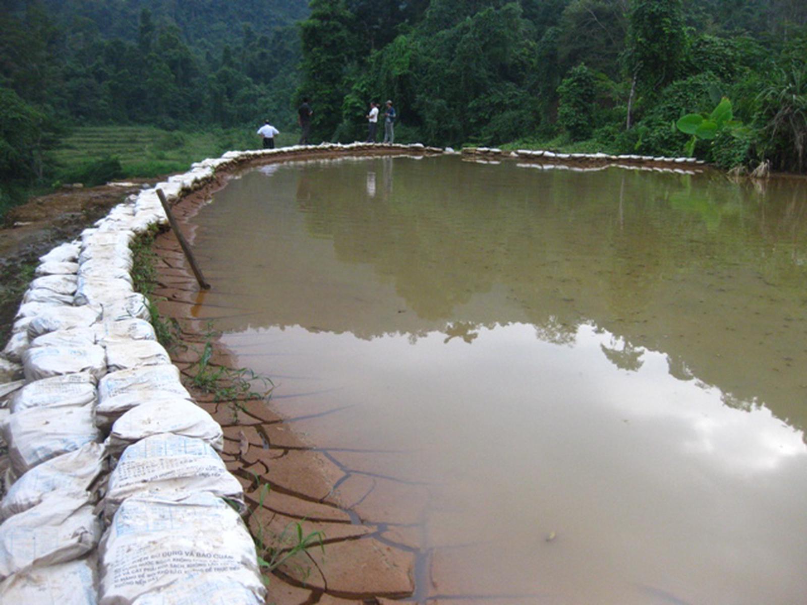 Bờ bao của các bể lắng lọc được Cty Kim Phát đắp rất cẩn thận. Ảnh: Văn Thanh