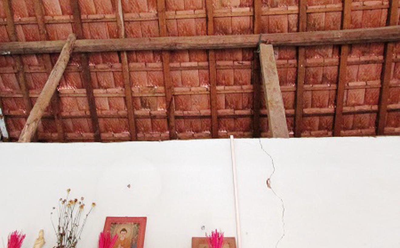 Dùng cây chống trần nhà vì sợ sập. Ảnh: Trung Đức