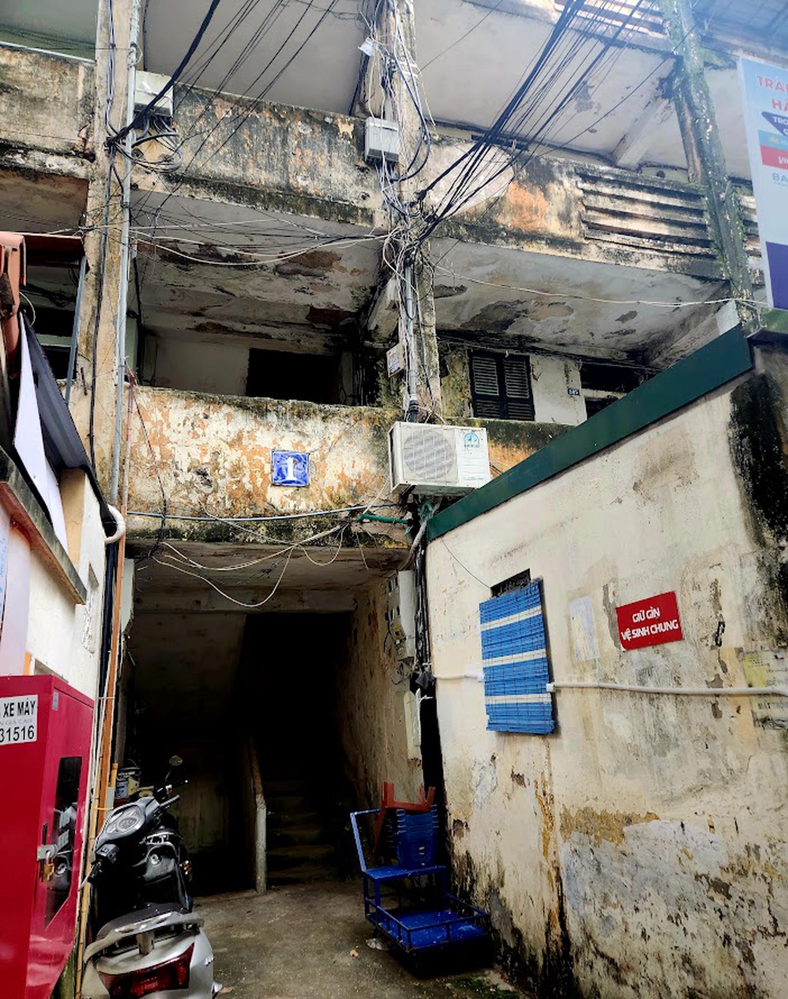 Nhà C2, Khu tập thể Kim Liên, Đống Đa xuống cấp nghiêm trọng. Ảnh: HH