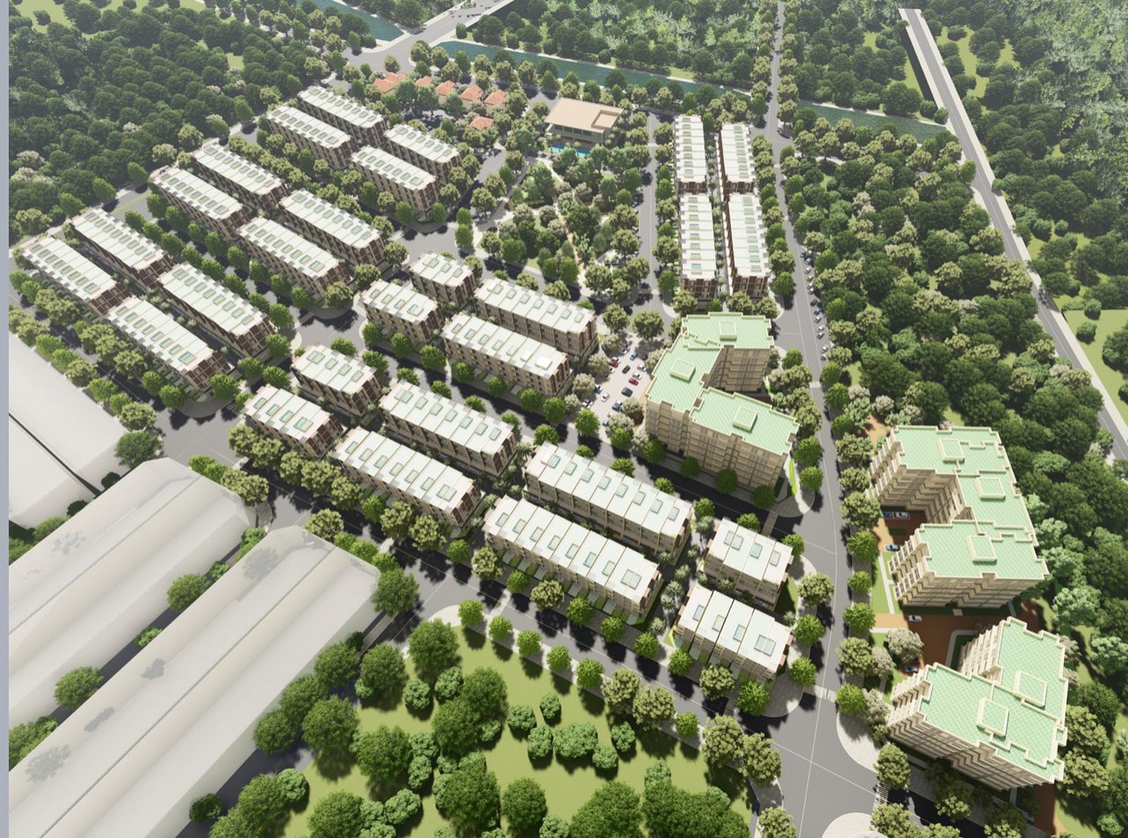 Phần công trình nhà ở với tổng diện tích khoảng 4ha, trong đó xây thô, hoàn thiện mặt ngoài khoảng 57 căn nhà liền kề; khoảng 104 lô đất để chuyển nhượng quyền sử dụng đất cho người dân tự xây dựng nhà ở theo thiết kế mẫu sau khi đầu tư hoàn thành hạ tầng kỹ thuật.
