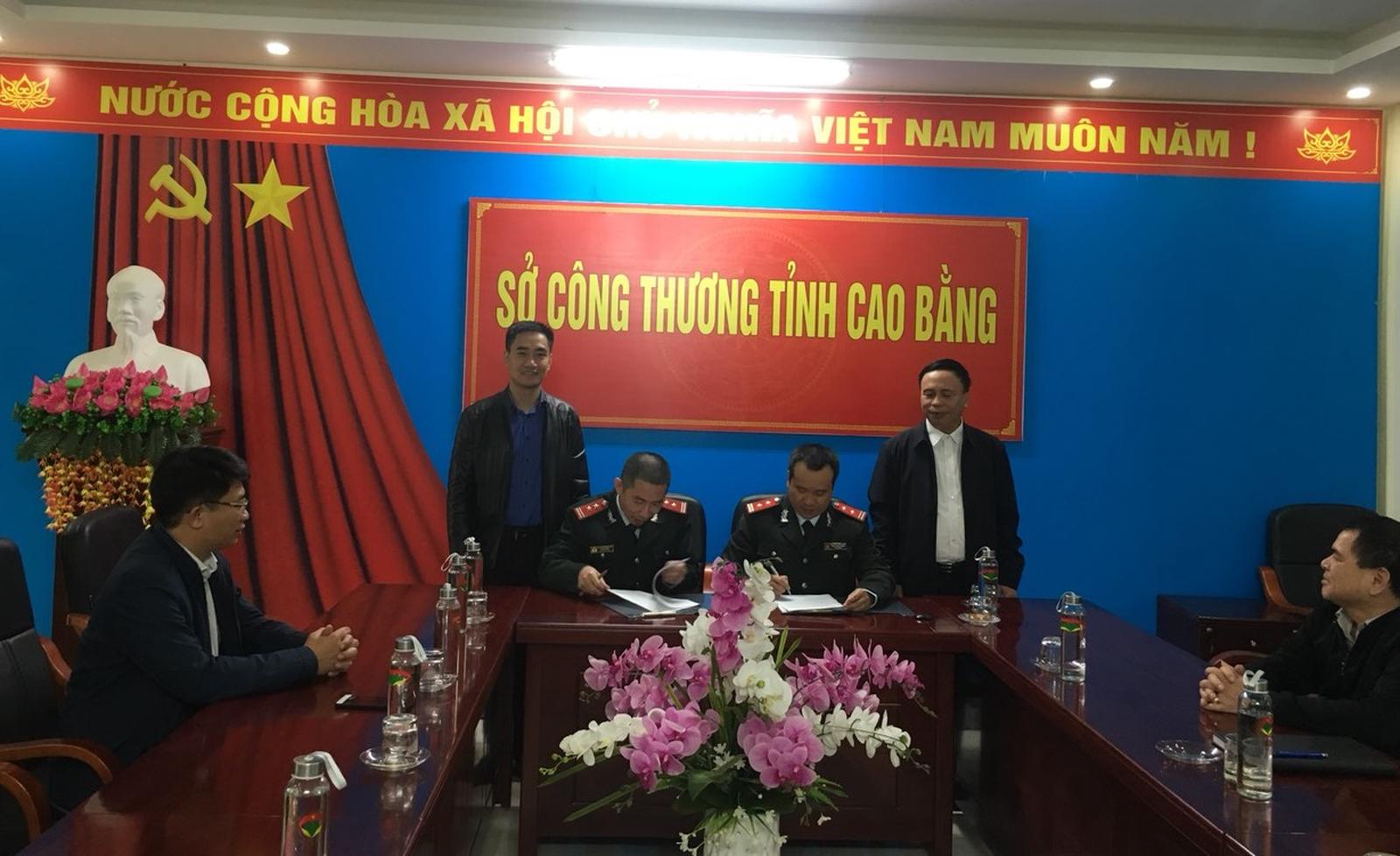 Ký biên bản ghi nhớ trao đổi nghiệp vụ giữa Thanh tra sở Công thương tỉnh Cao Bằng và tỉnh Nghệ An. Ảnh Sở Công thương Cao Bằng.