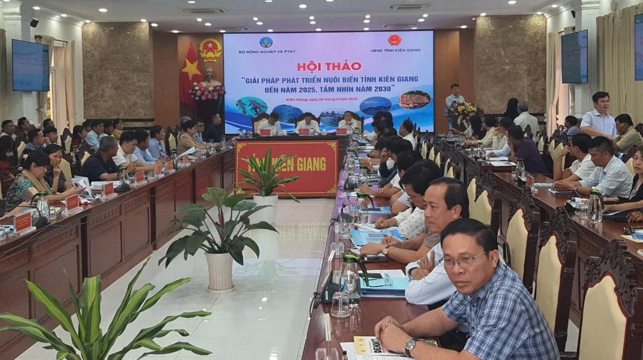 (Thanh tra) - Ngày 28/06/2024, Bộ Nông nghiệp và Phát triển Nông thôn và UBND tỉnh Kiên Giang đã tổ chức hội thảo về giải pháp phát triển nuôi biển tỉnh Kiên Giang đến năm 2025, tầm nhìn năm 2030 nhằm xác định tiềm năng, lợi thế về nuôi biển của tỉnh Kiên Giang.