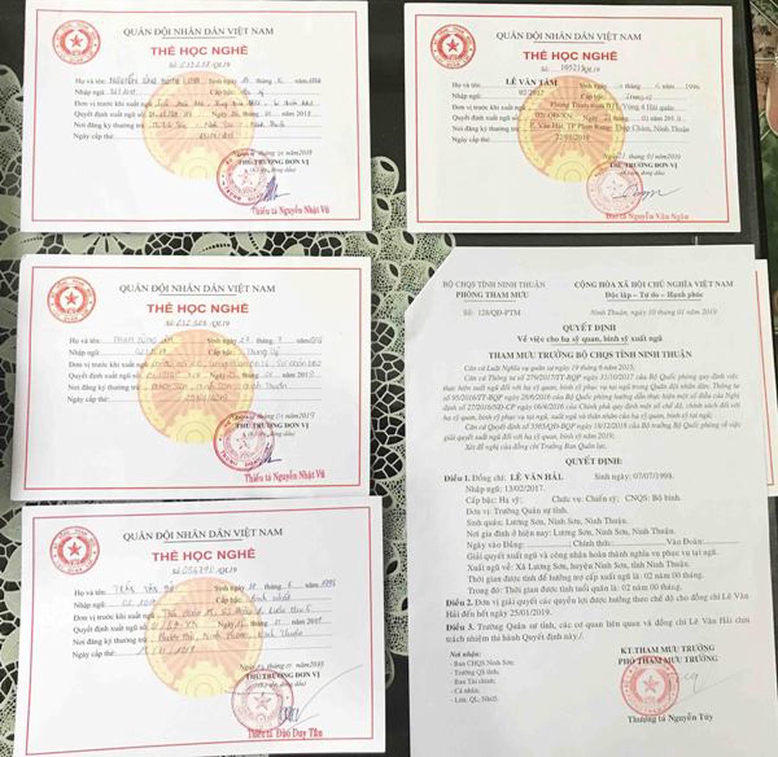 Thẻ học nghề và quyết định xuất ngũ của bộ đội xuất ngũ. Ảnh: Khoa Lê