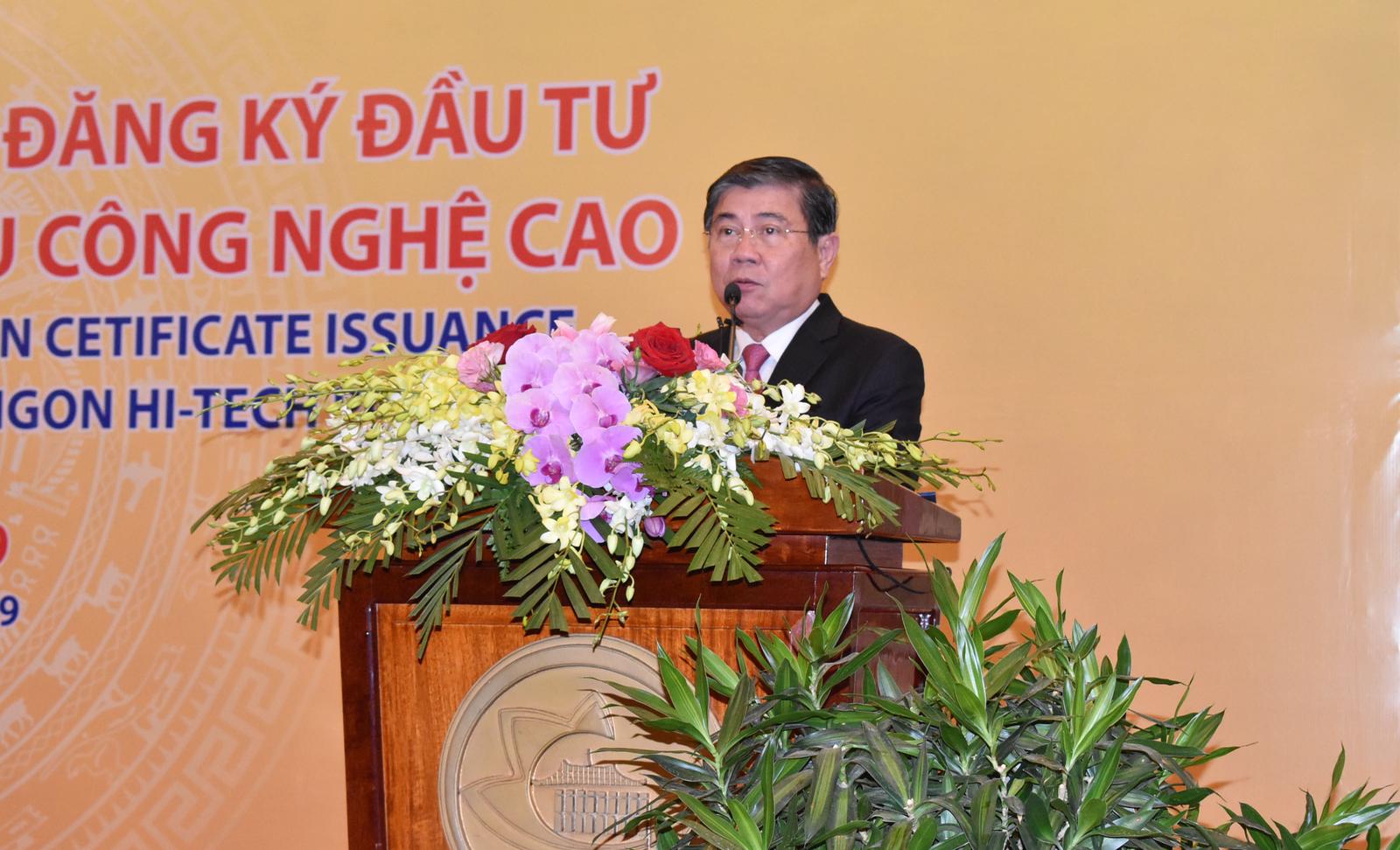 Phát biểu tại buổi lễ, Chủ tịch UBND TP HCM Nguyễn Thành Phong chúc mừng 9 doanh nghiệp được cấp Giấy chứng nhận đăng ký đầu tư đợt này. Đồng thời tin tưởng, dự án đầu tư của Công ty Techtronic Industries sẽ tạo cơ hội cho doanh nghiệp trong nước tham gia vào chuỗi cung ứng toàn cầu, góp phần gia tăng tỷ lệ nội địa hóa trong sản phẩm xuất khẩu…