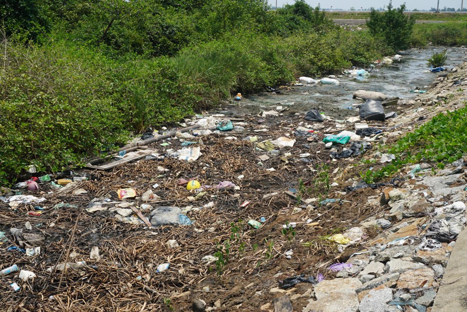 Tình trạng ô nhiễm ở một lạch nhỏ chảy ra sông Nghèn. Ảnh: Nguyên Dũng