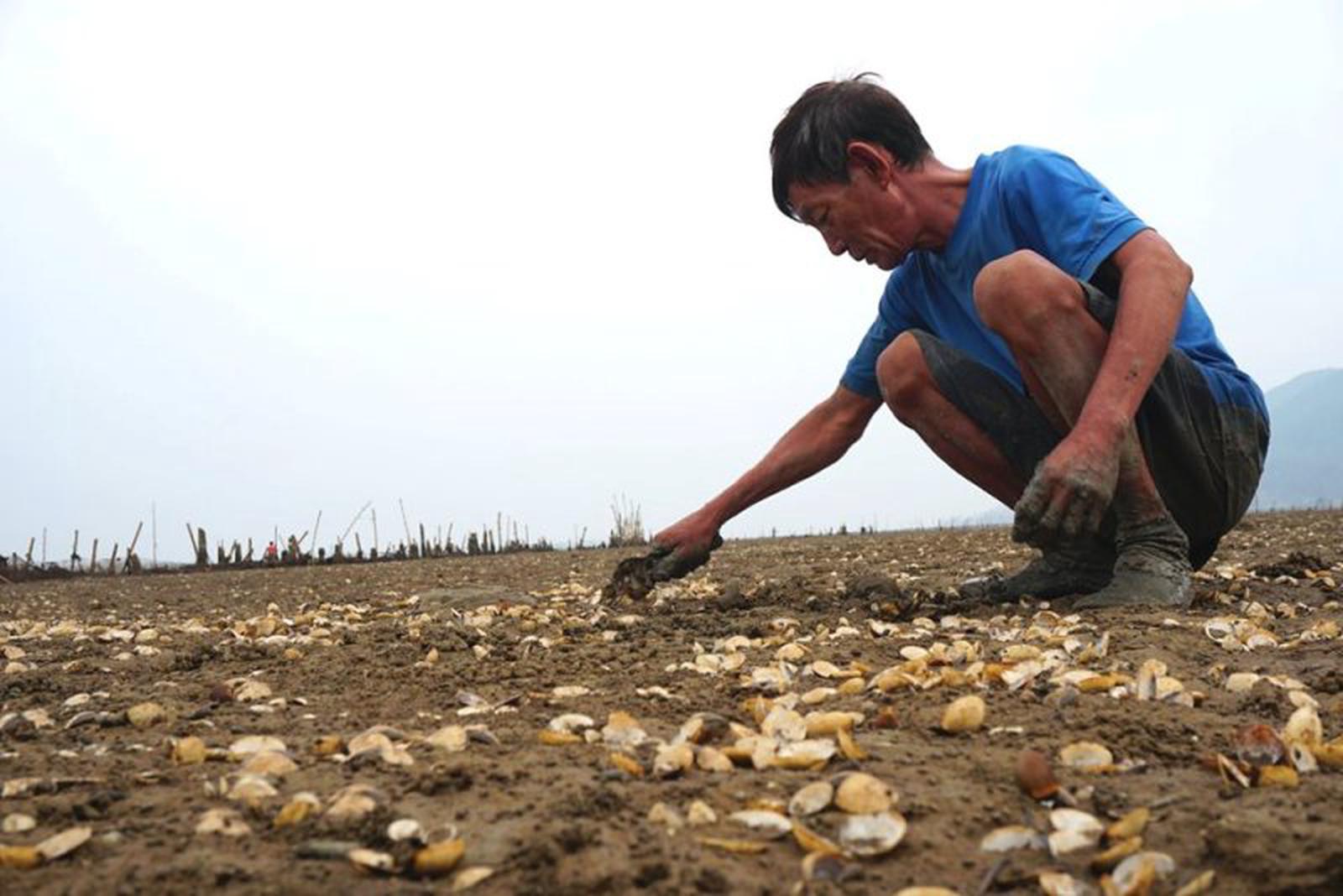 Ngao chết trắng ao đầm, ngư dân lâm cảnh trắng tay. Ảnh: Nguyên Dũng