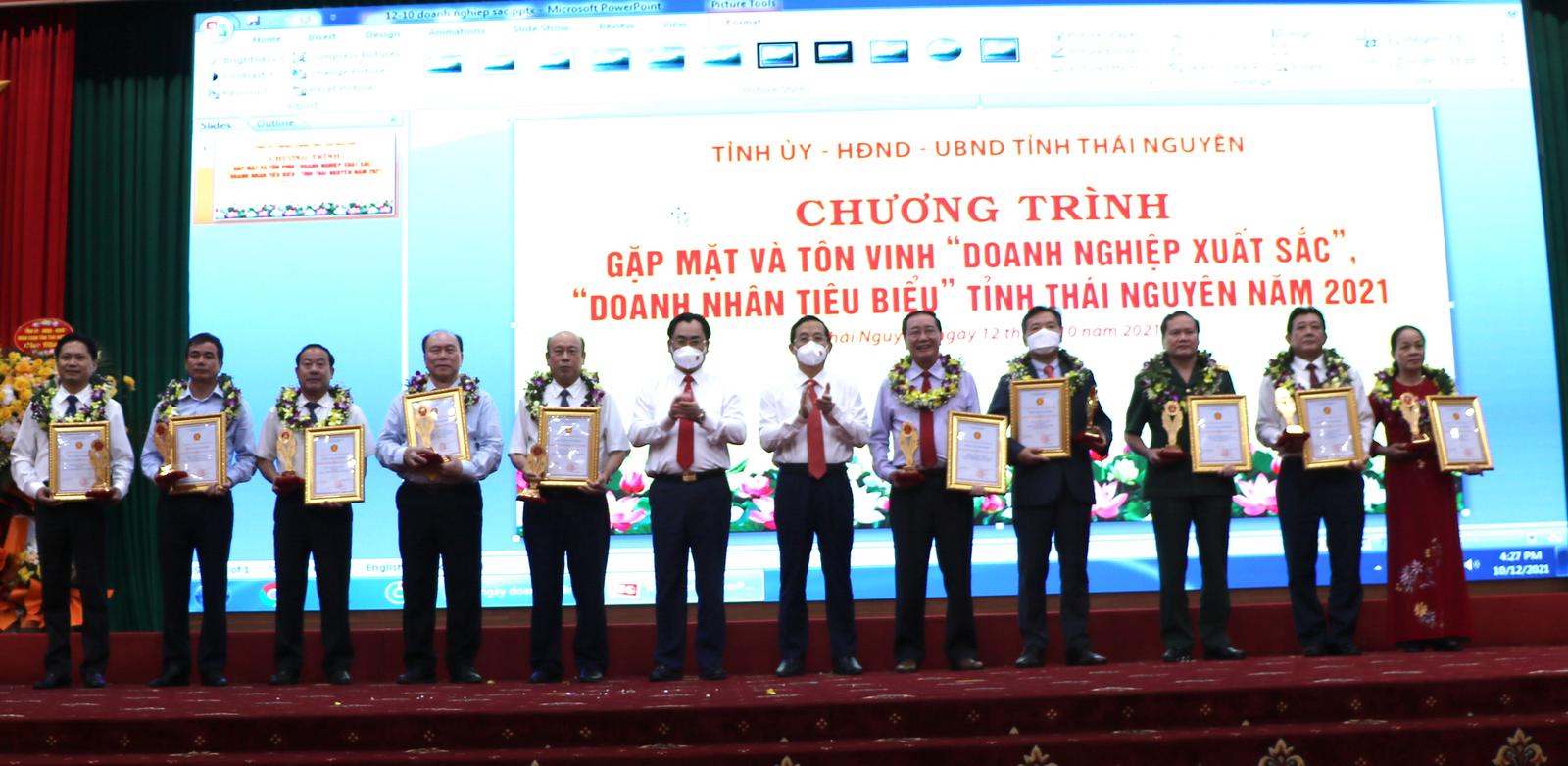 Tỉnh Thái Nguyên tôn vinh doanh nghiệp xuất sắc, doanh nhân tiêu biểu. Ảnh: HL