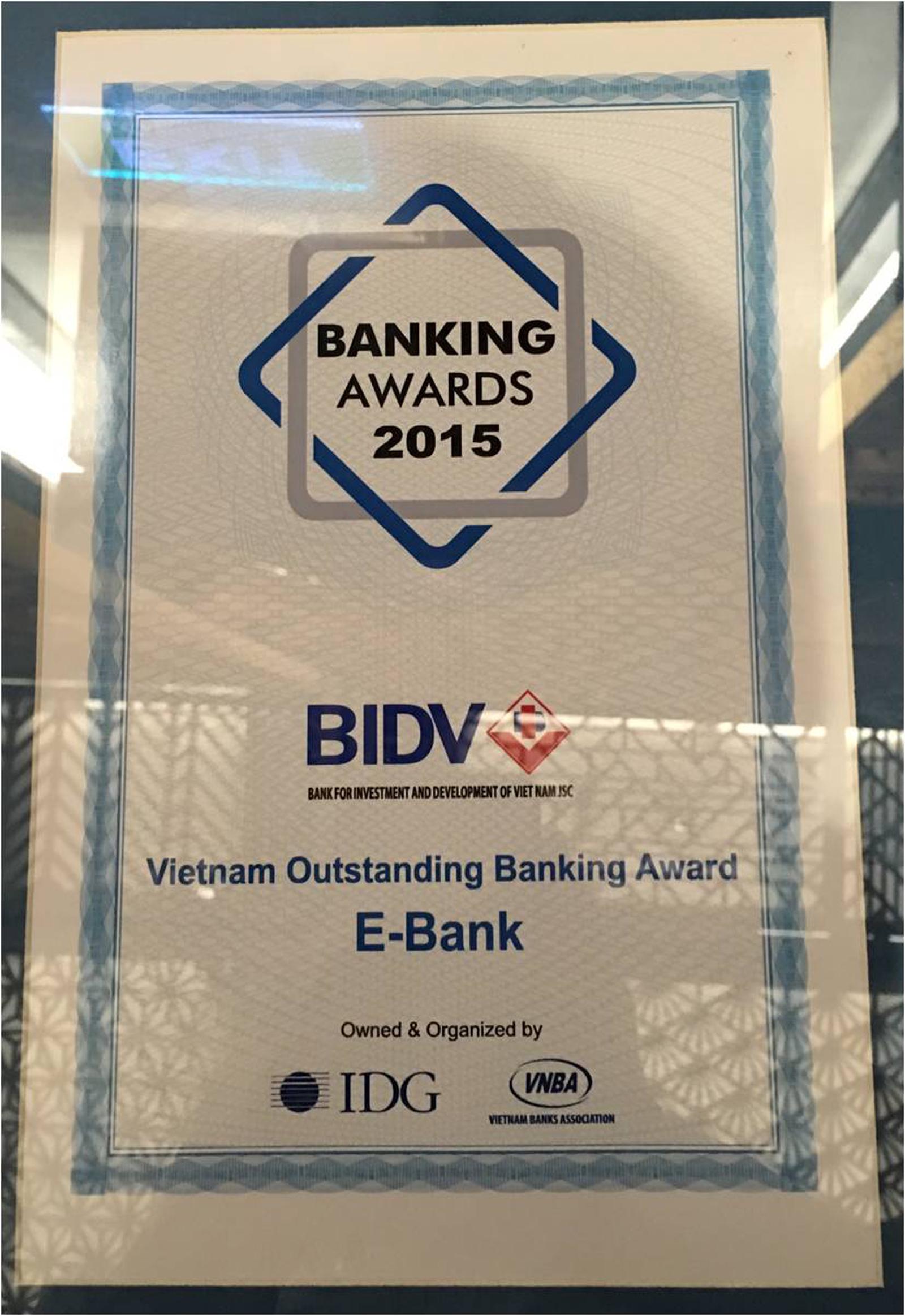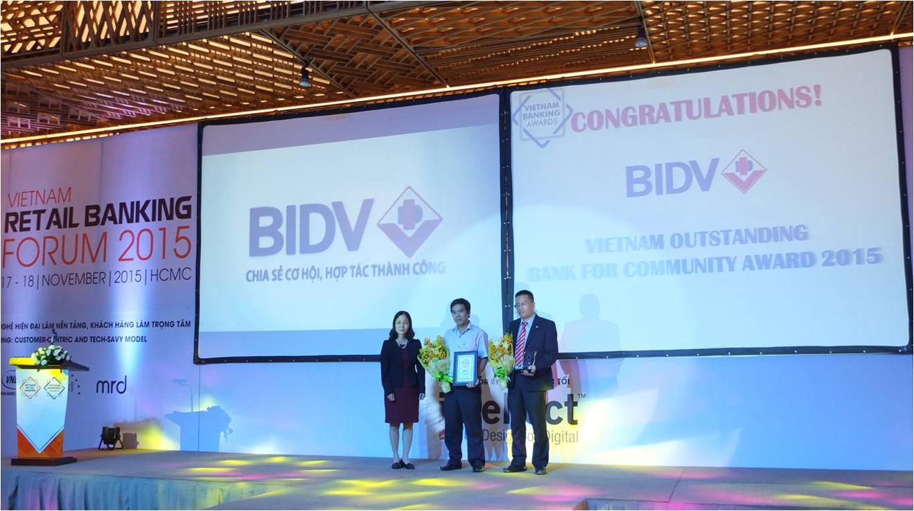 (Thanh tra) - Ngày 17/11/2015, tại Thành phố Hồ Chí Minh, Ngân hàng TMCP Đầu tư và Phát triển Việt Nam (BIDV) đã vinh dự trở thành Ngân hàng duy nhất hai năm liên tiếp được trao giải thưởng Ngân hàng Điện tử Việt Nam tiêu biểu và Ngân hàng vì cộng đồng 2015 tại Lễ trao giải “Giải thưởng Sản phẩm/Dịch vụ Ngân hàng tiêu biểu tại Việt Nam năm 2015 - Vietnam Outstanding Banking Product/Service Awards 2015”.