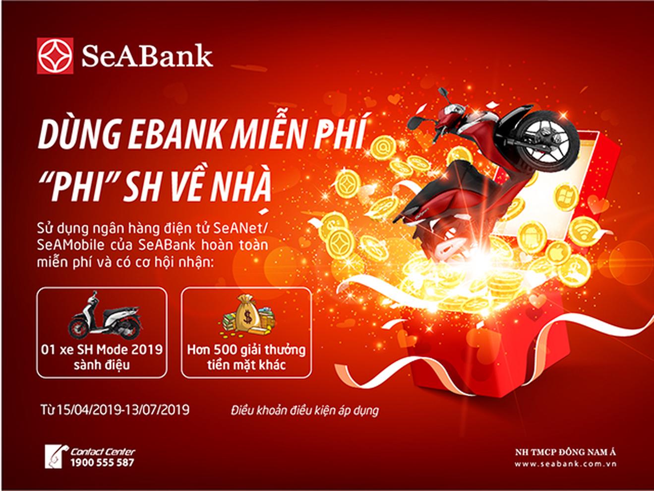 Không chỉ miễn phí, các ngân hàng còn liên tục triển khai nhiều chương trình khuyến mại với các quà tặng giá trị cao nhằm gia tăng thêm lợi ích cho khách hàng. “Cơn sốt” quà tặng xe máy Honda SH Mode trị giá 70 triệu đồng và hơn 500 giải thưởng khác của SeABank dành cho các giao dịch thanh toán hóa đơn (Billing), nạp tiền dịch vụ (Topup), chuyển tiền liên ngân hàng (Transfer) qua các dịch vụ ngân hàng điện tử SeANet (www.seanet.vn), SeAMobile App, SeAMobile web được đông đảo khách hàng quan tâm. Chỉ cần thực hiện thành công các loại giao dịch trên, khách hàng nhận 01 mã FT để có cơ hội nhận những quà tặng hấp dẫn trên.