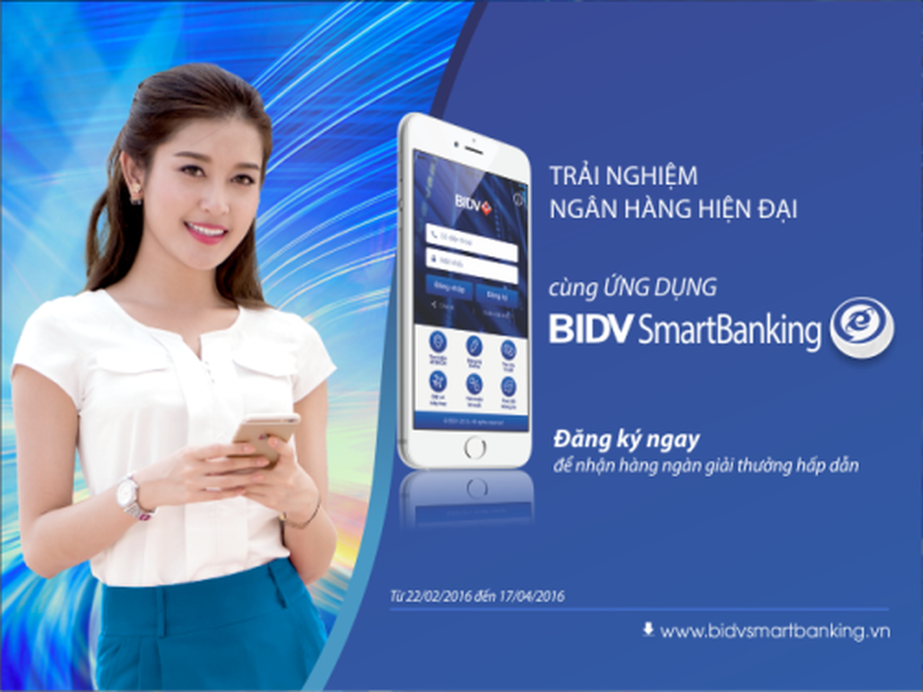 Từ ngày22/02/2016 đến hết 17/04/2016, tặng giá trị nạp tiền điện thoại trị giá50.000 đồng cho 200 khách hàng đầu tiênđăng ký dịch vụ BIDV SmartBankingmỗi ngày và hơn 800 giải quay số may mắn cho các khách hàng đăng ký mới hàng tuần.