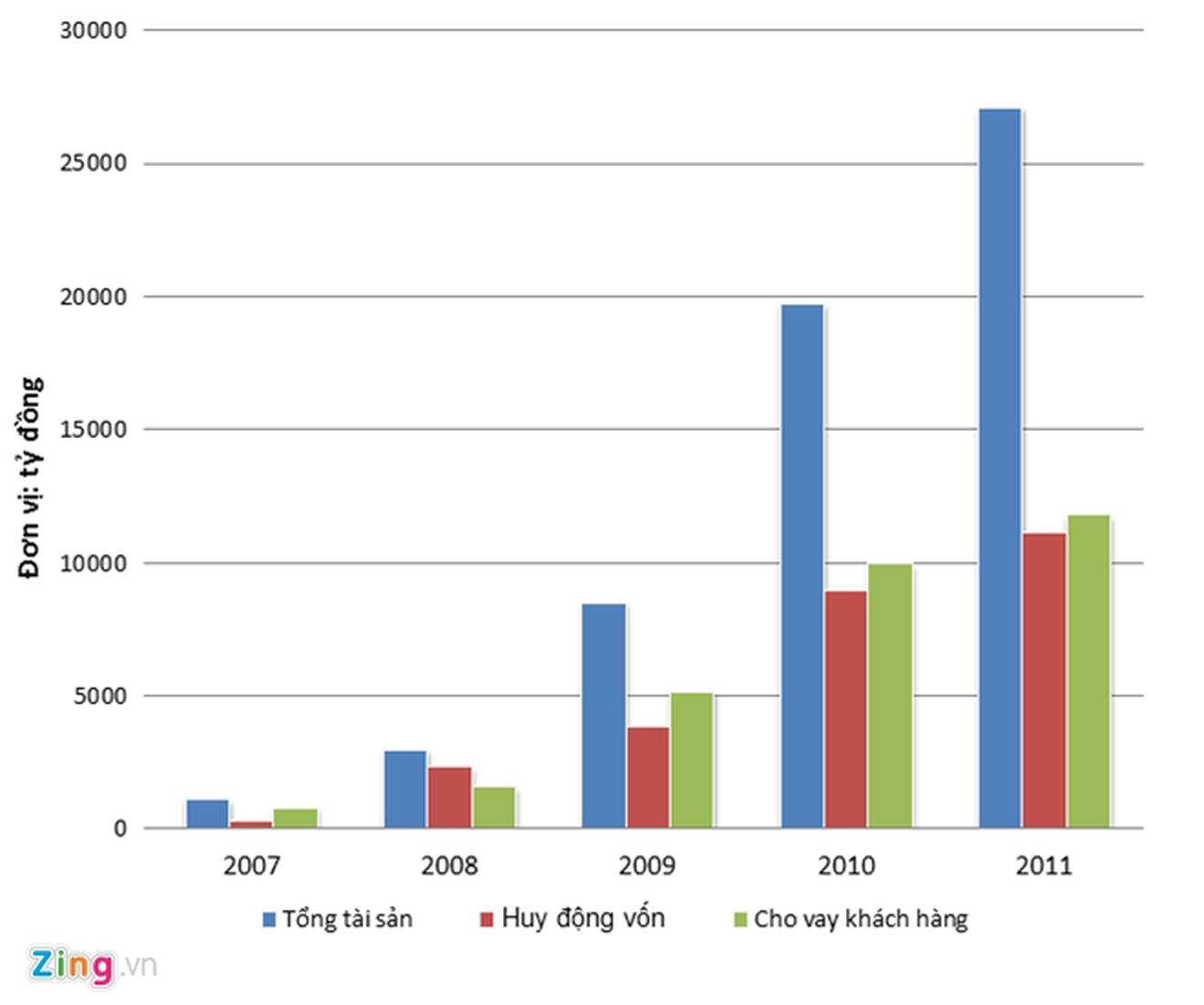 Từ một ngân hàng cỡ nhỏ, đến năm 2011, tổng tài sản TrustBank đã lên tới 27.130 tỷ đồng, tăng 26 lần so với thời gian chuyển đổi mô hình. Huy động vốn đạt 11.173 tỷ đồng, tăng 37 lần và dư nợ cho vay đạt 11.810 tỷ đồng, tăng gần 15 lần so với năm 2007.