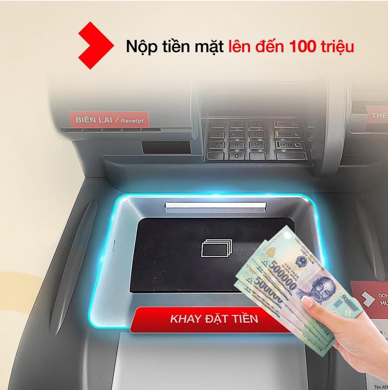 Với máy ATM Thế hệ mới, khách hàng hoàn toàn có thể chủ động nộp tiền mặt trực tiếp vào tài khoản cho bạn bè và người thân, hay đối tác cùng sở hữu tài khoản Techcombank lên đến 100 triệu đồng/ngày. Hạn mức mỗi lần rút lên đến 20 triệu đồng đối với các giao dịch bằng thẻ.