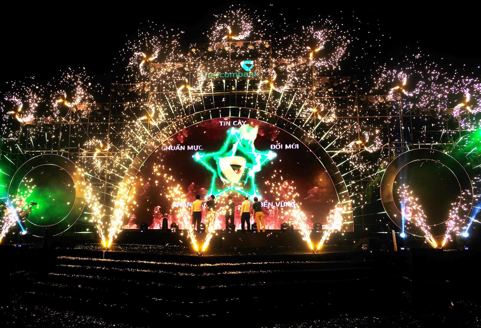 Hơn 700 đoàn viên thanh niên Vietcombank đã chung sức xếp thành hình bản đồ Việt Nam và thương hiệu Vietcombank