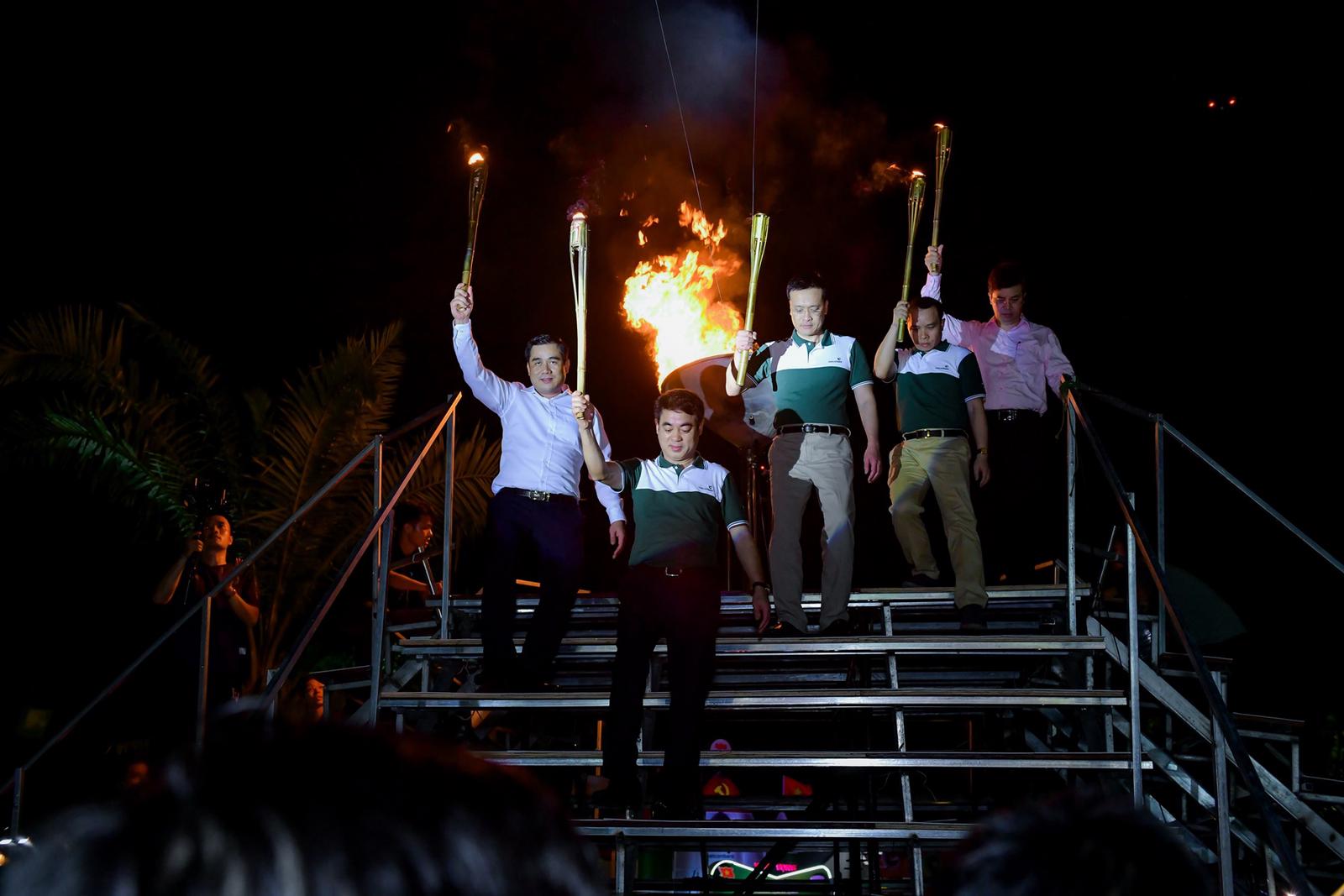 Nghi thức truyền lửa được thực hiện bởi đồng chí Bí thư Đảng ủy Vietcombank cùng các đồng chí khách mời
