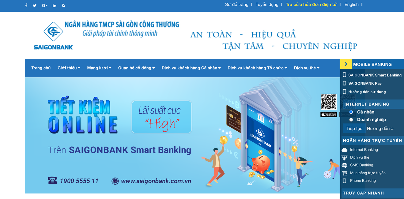 Ảnh chụp màn hình website Saigon Bank