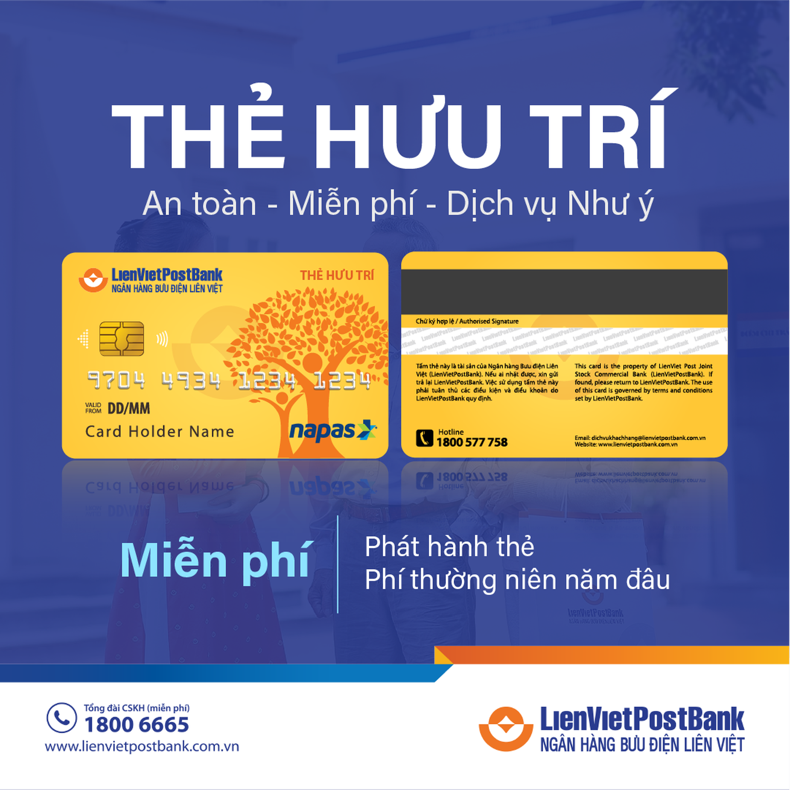 Thẻ hưu trí được Ngân hàng Bưu điện Liên Việt cung cấp và phát hành cho các khách hàng tại 556 Chi nhánh/phòng giao dịch Ngân hàng, gần 1.000 Phòng giao dịch Bưu điện (PGDBĐ) hoặc tiếp nhận hồ sơ đăng ký mở thẻ tại các bàn chi trả lương hưu trên khắp các địa bàn cả nước với thủ tục đơn giản cùng nhiều ưu đãi hiện đang áp dụng như miễn phí phát hành thẻ; miễn phí thường niên năm đầu cho chủ thẻ; Miễn phí rút tiền tại tất cả các ATM trên toàn quốc; miễn phí rút tiền tại các POS đặt tại PGDBĐ trên toàn quốc….