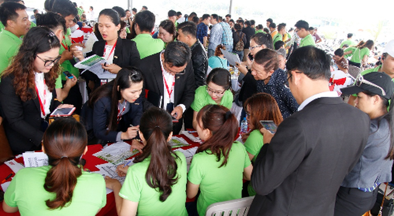 Nhân viên địa ốc rao bán dự án tại Nhơn Trạch hồi tháng 8/2016. Ảnh:Phước Tuấn