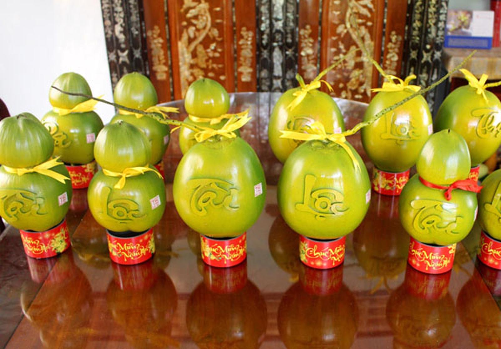 Một sản phẩm Tết mang nét đặc trưng xứ dừa Bến Tre là quả dừa hình hồ lô nổi chữ thư pháp. Đây là sản phẩm do anh Nguyễn Thanh Tâm (thị trấn Châu Thành, huyện Châu Thành, tỉnh Bến Tre) tạo ra và đã được Cục Sở hữu trí tuệ (Bộ Khoa học và Công nghệ) cấp bằng giải pháp độc quyền.